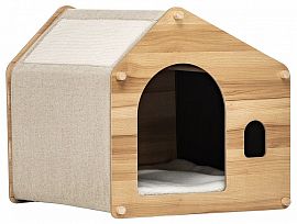 Домик для питомцев изготовлен из МДФ – материала, который является экологически чистым и безопасным для животных. Все его детали проходят через дополнительный процесс шлифовки, в результате чего поверхность становится гладкой и безопасной, без острых углов. Особенностью домика является его прочная конструкция. Все его элементы соединяются между собой специальными креплениями, которые обеспечивают надежную фиксацию всех сторон домика. Это гарантирует, что домик не развалится и будет служить долго, даже при активном использовании животными. Снаружи домик обтянут тканью, которая также является экологически чистой и безопасной для животных. В данном случае используется искусственный лён и спанбонд. Эти материалы обладают высокой прочностью и устойчивостью к износу, что позволяет сохранить внешний вид домика на протяжении длительного времени.