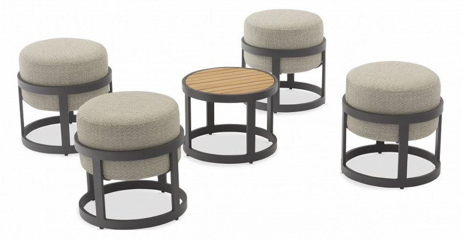 Компоненты, входящие в комплект: стол журнальный - 420х330 мм, 4 табурета - 420х450 мм.