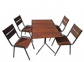 Подстолье: Столешница - фанера или рейки, из которых изготавливается столешница, крепятся на раму из стального профиля толщиной 0,8 мм. Опора стола изготавливается из четырёх изогнутых стальных труб диаметром 25 мм, объединённых в крестообразную конструкцию, которая при транспортировке и хранении стола трансформируется в плоскую, что позволяет снизить размеры площади, занимаемой столом. По углам столешницы устанавливаются пластиковые заглушки, что позволяет складывать столы друг на друга, не повреждая их. Для защиты напольных покрытий в нижней части основания устанавливаются пластиковые колпачки. Все металлические детали каркаса окрашены полимерной порошковой краской.