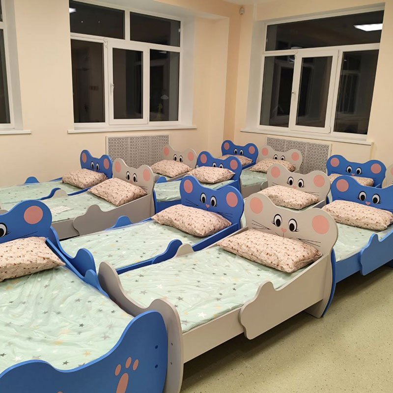 Удобная кровать для малыша от 3 лет с прочным основанием для матраца и оригинальными боковыми спинками, края закруглены во избежание травм. Кровать рекомендуется для оснащения спальной комнаты детского сада. Детская мебель доставляется в разобранном виде в фабричной упаковке.