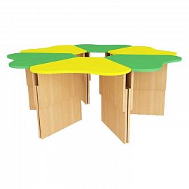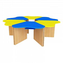 Яркий, оригинальный в дизайнерском исполнении стол детский «Ромашка» украсит уголок в Вашем детском саду. Мягкие, элегантные линии без углов делают этот предмет интерьера безопасным для ребенка. Стол состоит из 6 «лепестков-столешниц», выполненных из ЛДСП. Столешницы располагаются на ламинатных ножках, как регулируемых, так и нерегулируемых. При производстве мебели для детского сада мы стараемся сделать её функциональной и максимально комфортной. Данную модель детского стола можно также приставлять к стене 3 секциями, в результате чего получится 2 столика. Очень просто и удобно!