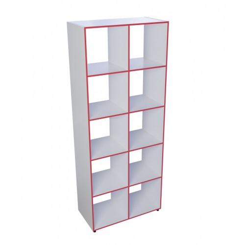 Стеллаж имеет 10 ячеек. Конструкция оснащена регулируемыми мебельными ножками..