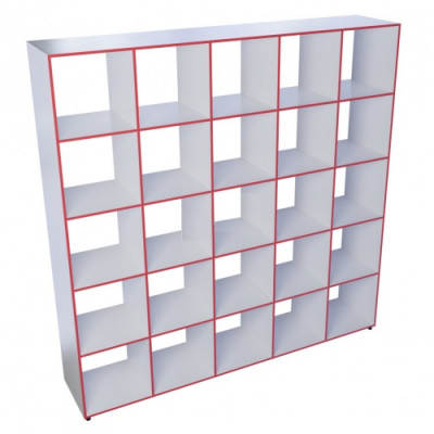 Стеллаж имеет 25 ячеек. Конструкция оснащена регулируемыми мебельными ножками.