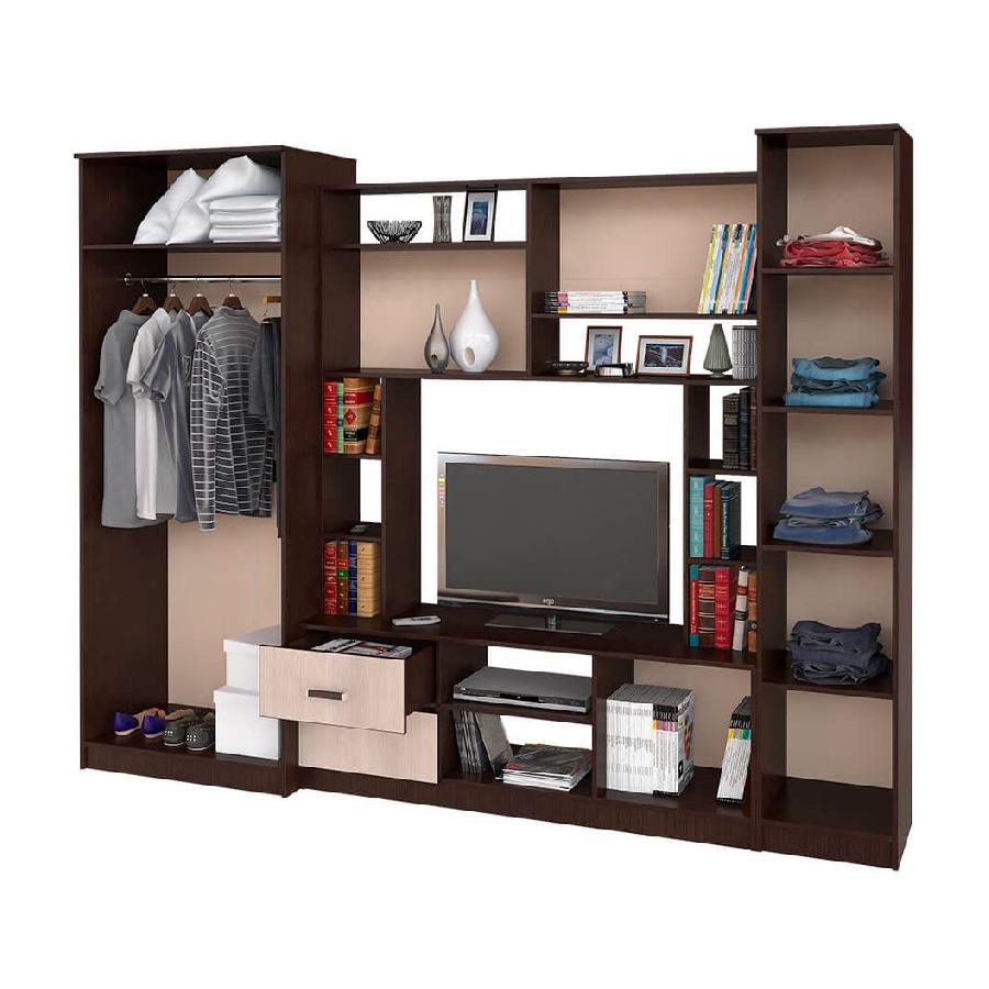 Гостиная оборудована нишей под ТВ размерами 1000х798х432 мм. Модуль данной модели - универсален: собирается как на правую, так и на левую стороны.
