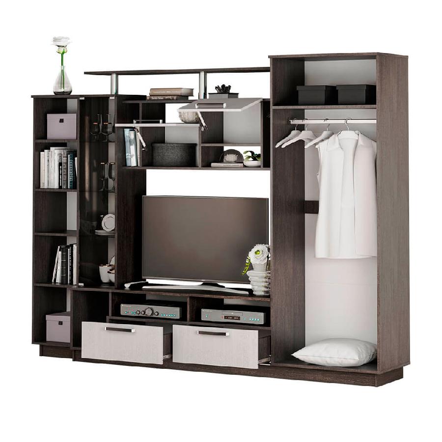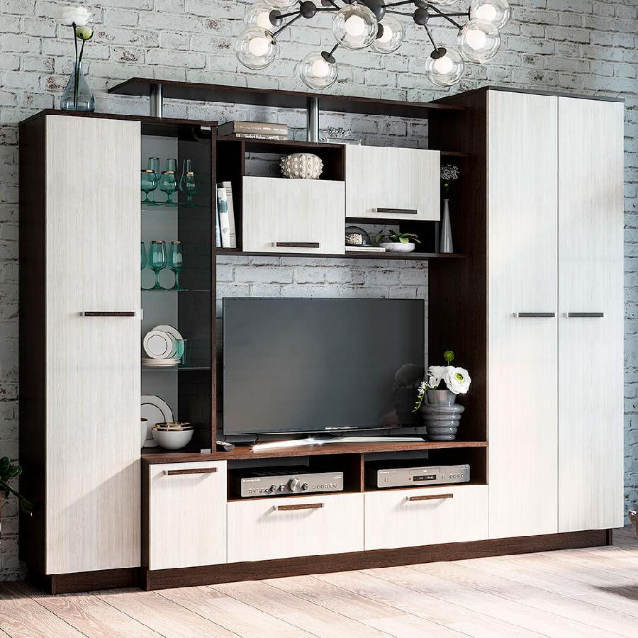 Гостиная «Вега» может стать главным украшением любого современного интерьера, подчеркнув естественность и ненавязчивость оформления благодаря цветовым сочетаниям. Важнейшей особенностью гостиной «Вега» является высокая функциональность. Особую грациозность модели придает стеклянный фасад гостиной, внутри которого 3 стеклянные полки.