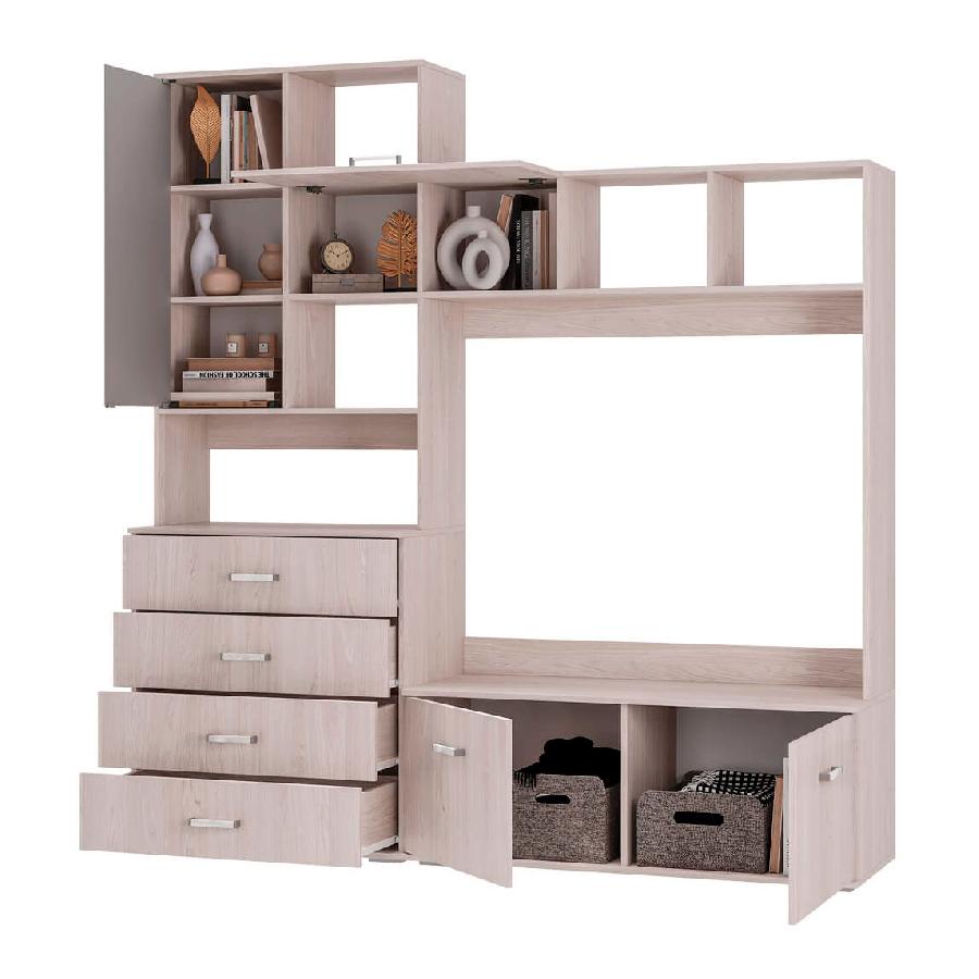 Модульная гостиная Белла - это функциональная стилизованная модель с простыми геометрическими формами.