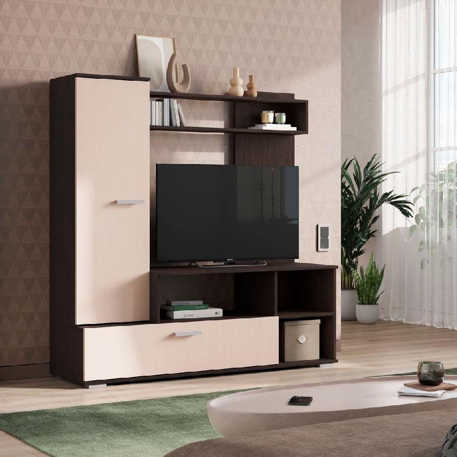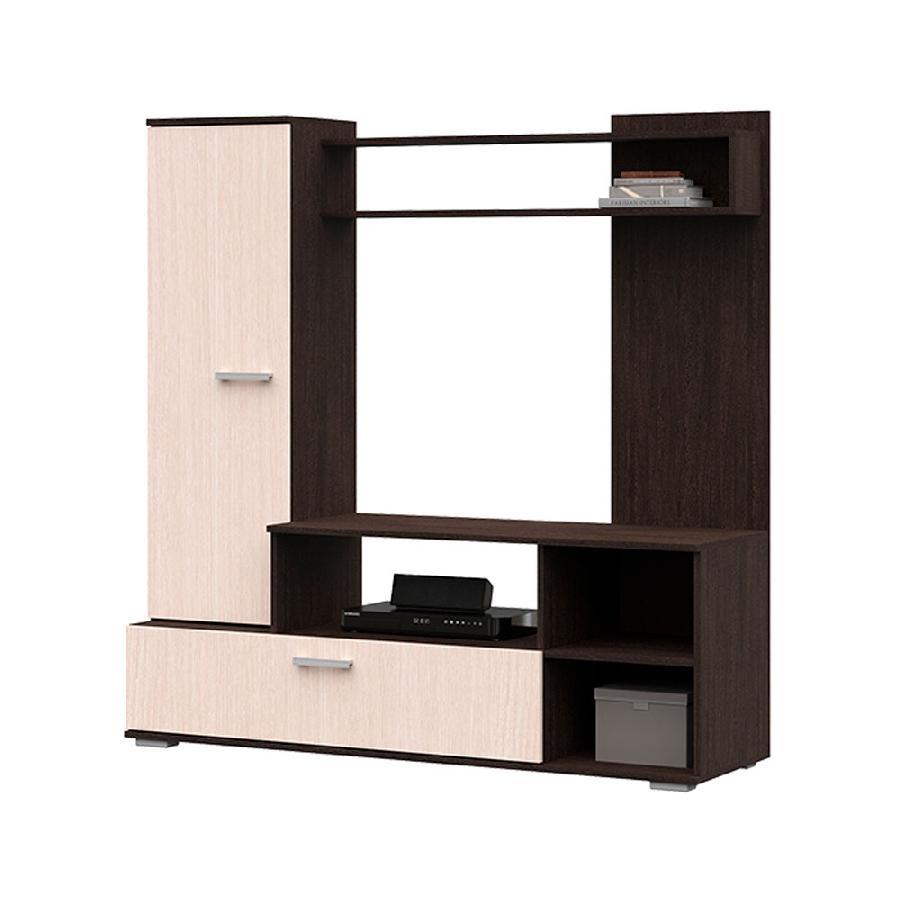 Стенка имеет строгий дизайн, создает ощущение не загроможденного пространства.