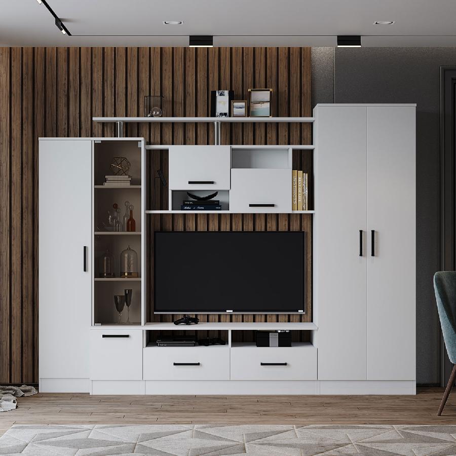 Тонированное стекло в витрине, наличие хромированных труб системы Joker в открытой нише.