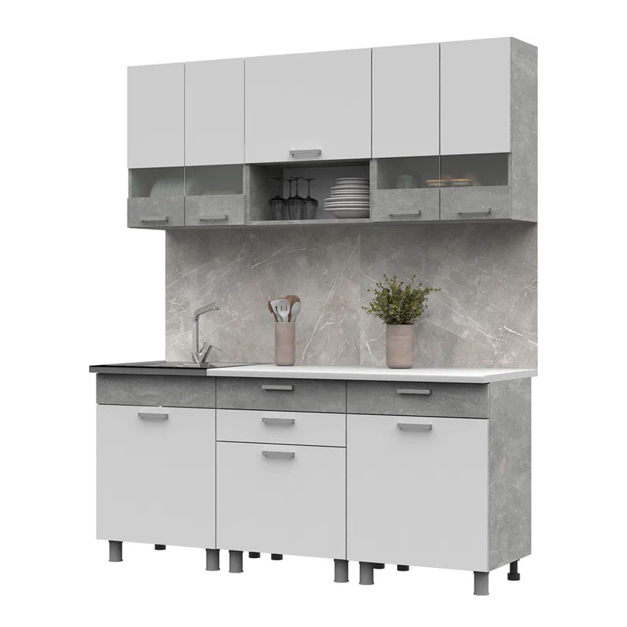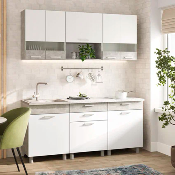 Кухня Денвер представляет собой готовое решение, которое отлично впишется кухню любого размера. Она выполнена в современном индустриальном стиле и объединяет в себе высокую функциональность и минималистичный декор. Сочетание в дизайне модулей естественных светлых оттенков белоснежного, текстурированного серого и фактуры матового стекла выглядит стильно и изысканно, добавляет света и объемности, создает приятное ощущение комфорта, надежности и уюта.