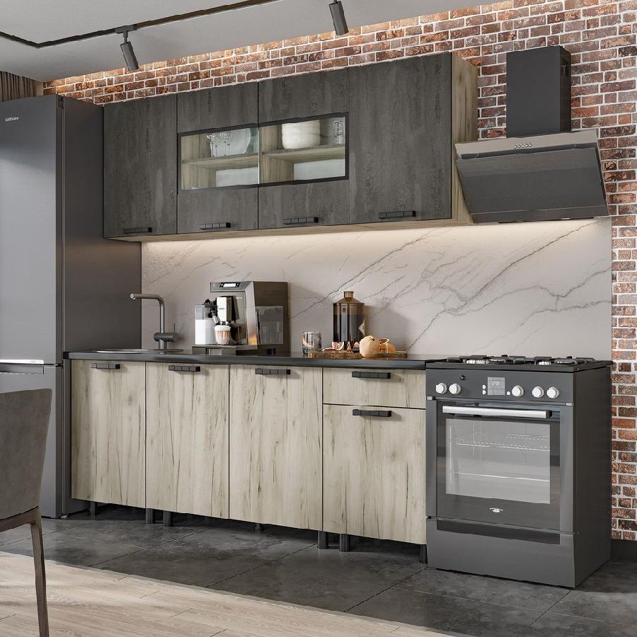 Размер гарнитура: (ШхВхГ) 2000х2160х600 с учетом высоты опор и столешниц.