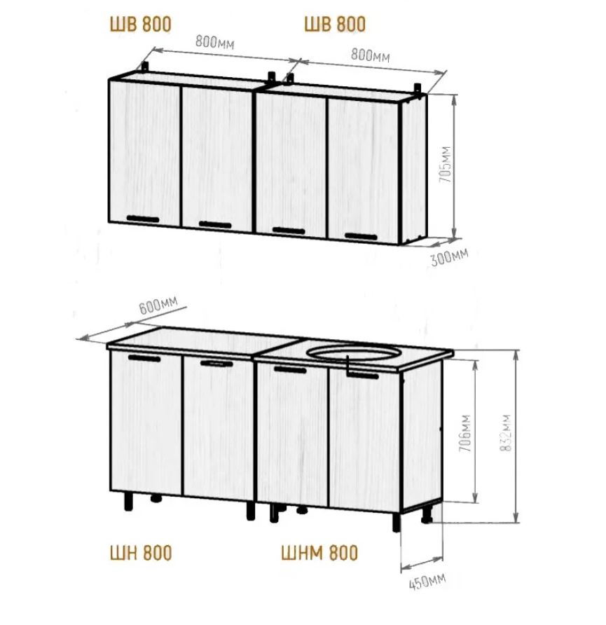 3) 800 мойка 800*820*440 (мойка накладная, в комплект не входит)