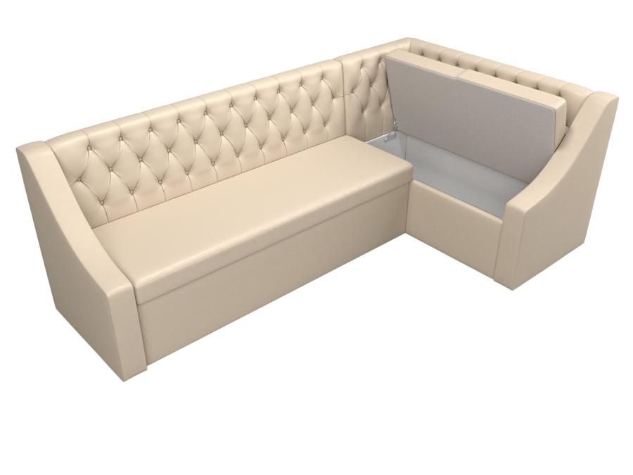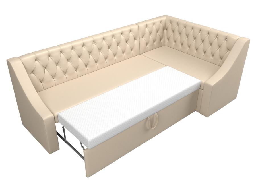 Мерлин – угловой кухонный диван хорошего качества по доступной цене. Он отлично подойдет для дополнения кухни в малогабаритной квартире. Высокая спинка, украшенная каретной стяжкой, снимет напряжение с позвоночника. Подлокотники помогут расслабить руки. Сиденье легко превращается в полноценную кровать. Дополнительную выгоду обеспечивает вместительный ящик размером 117х35х57 см под угловым сиденьем.