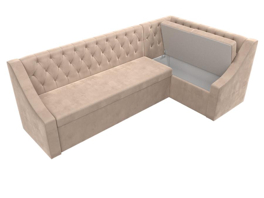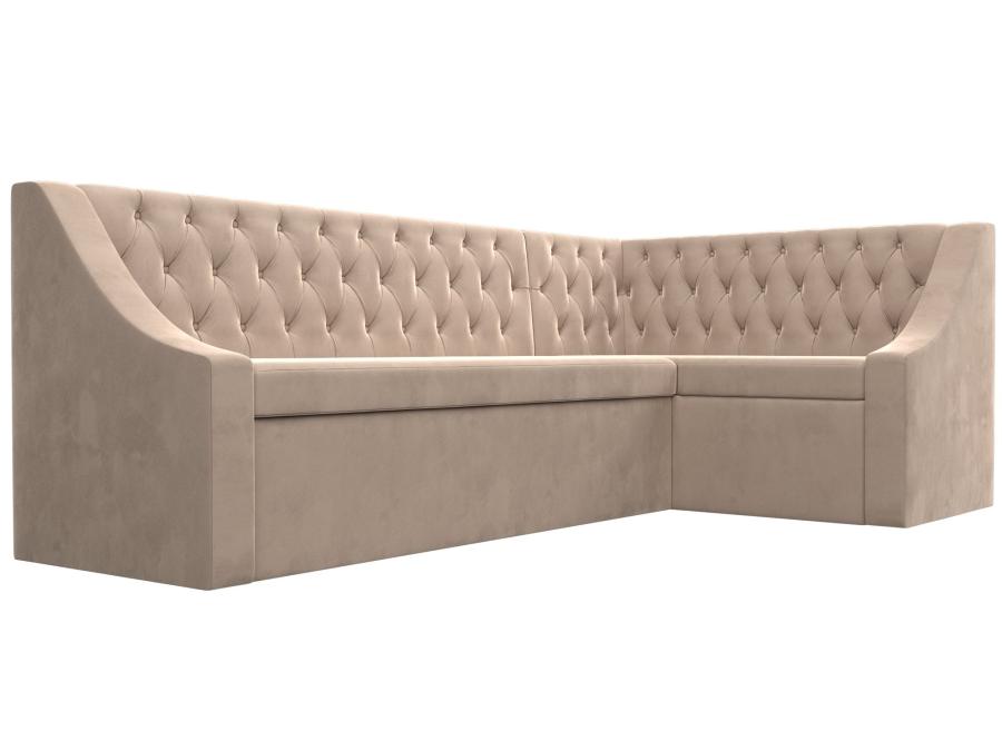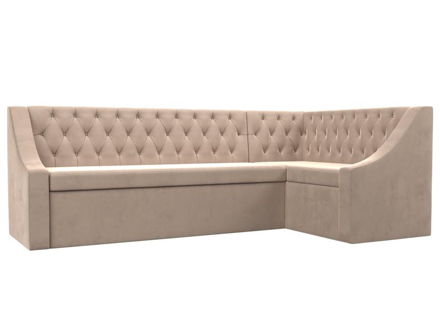 Кухонный угловой диван Мерлин правый (полностью велюр бежевый)