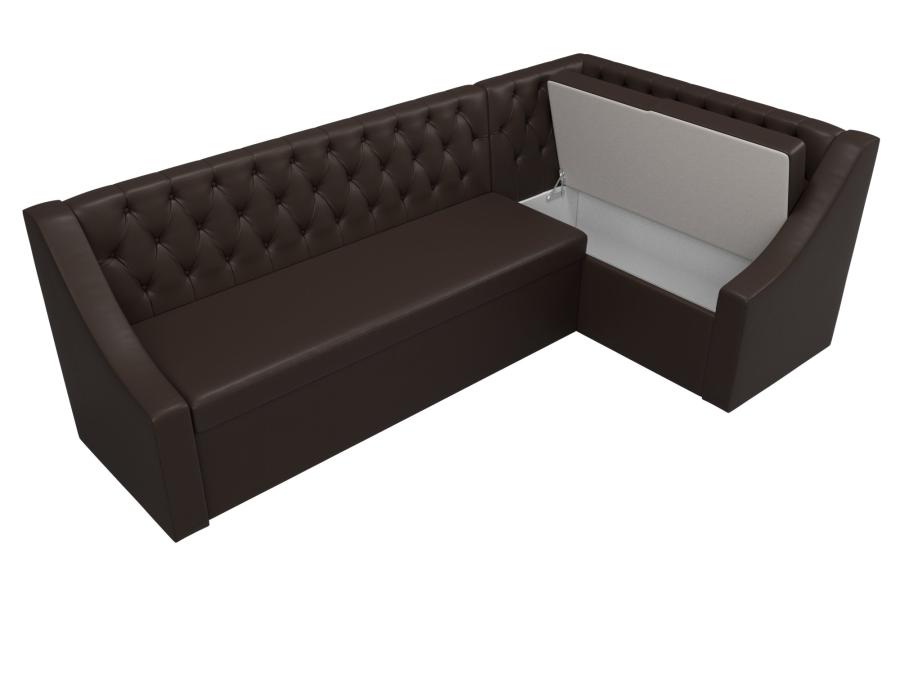 Мерлин – угловой кухонный диван хорошего качества по доступной цене. Он отлично подойдет для дополнения кухни в малогабаритной квартире. Высокая спинка, украшенная каретной стяжкой, снимет напряжение с позвоночника. Подлокотники помогут расслабить руки. Сиденье легко превращается в полноценную кровать. Дополнительную выгоду обеспечивает вместительный ящик размером 117х35х57 см под угловым сиденьем.
