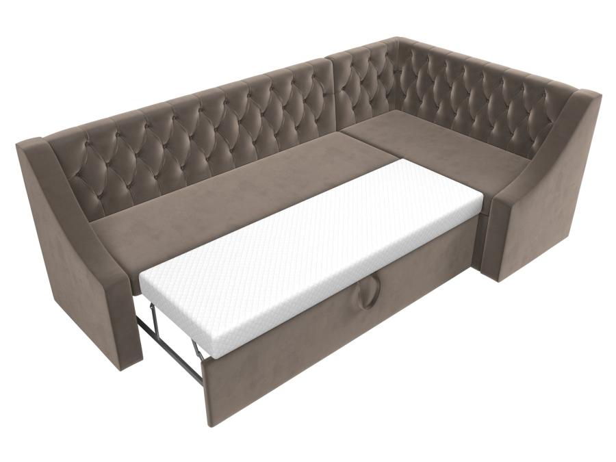 Мерлин – угловой кухонный диван хорошего качества по доступной цене. Он отлично подойдет для дополнения кухни в малогабаритной квартире. Высокая спинка снимет напряжение с позвоночника. Подлокотники помогут расслабить руки. Сиденье легко превращается в полноценную кровать.