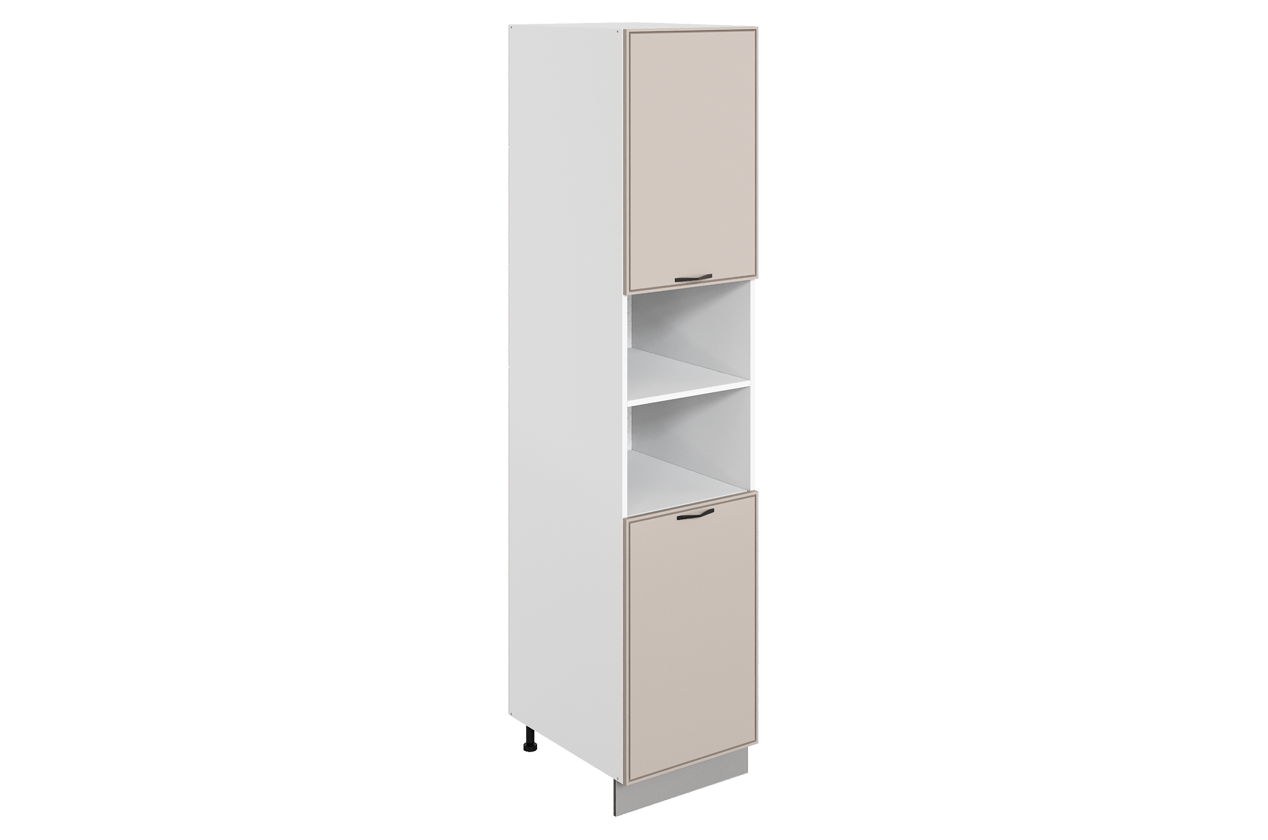 Состоит из: шкаф-пенал с открытыми полками и двумя закрытыми дверцами. Шкаф-пенал многофункциональный, имеет два больших закрытых отсека и открытую нишу. Открытые полки подойдут как для мелочей, так и для микроволновки. Убрав полку посередине, можно разместить в нише встроенную духовку. Дополнительно можно комплектовать цельным пластиковым цоколем на весь кухонный гарнитур. Рекомендуем комплектовать: с остальными модулями из серии «Монако», «Бариста», «Стоун» и «Марта». Ручки в комплект модуля не входят, заказываются отдельно!
