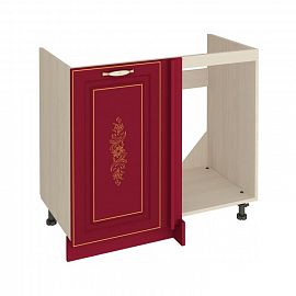 Угловой стол под мойку «Виктория 20.52» является частью модульного набора для кухни «Виктория». Плавное закрывание дверцы обеспечивается установленными петлями с доводчиками. Ножки регулируются по высоте, что позволяет при установке скорректировать неровности пола. Модуль является универсальным и может быть собран как на левую, так и на правую сторону угла.