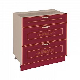 Стол с тремя ящиками «Виктория 20.66» является частью модульного набора для кухни «Виктория». Ящики оснащены системой выдвижения метабокс. Ножки регулируются по высоте, что позволяет при установке скорректировать неровности пола.