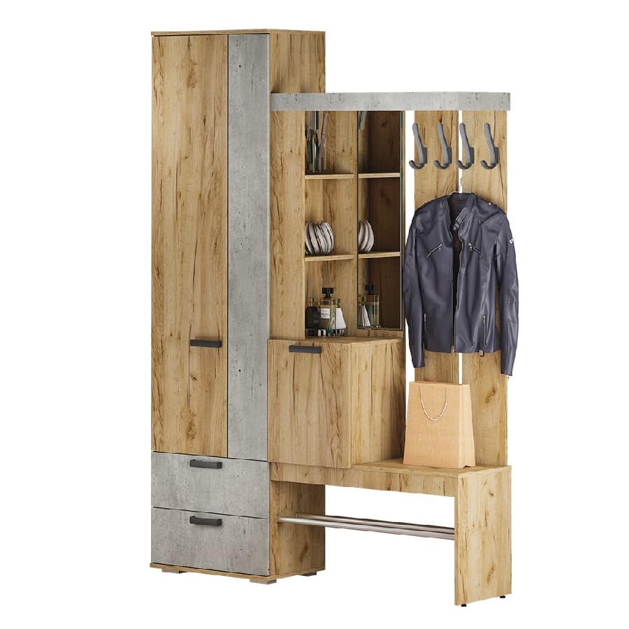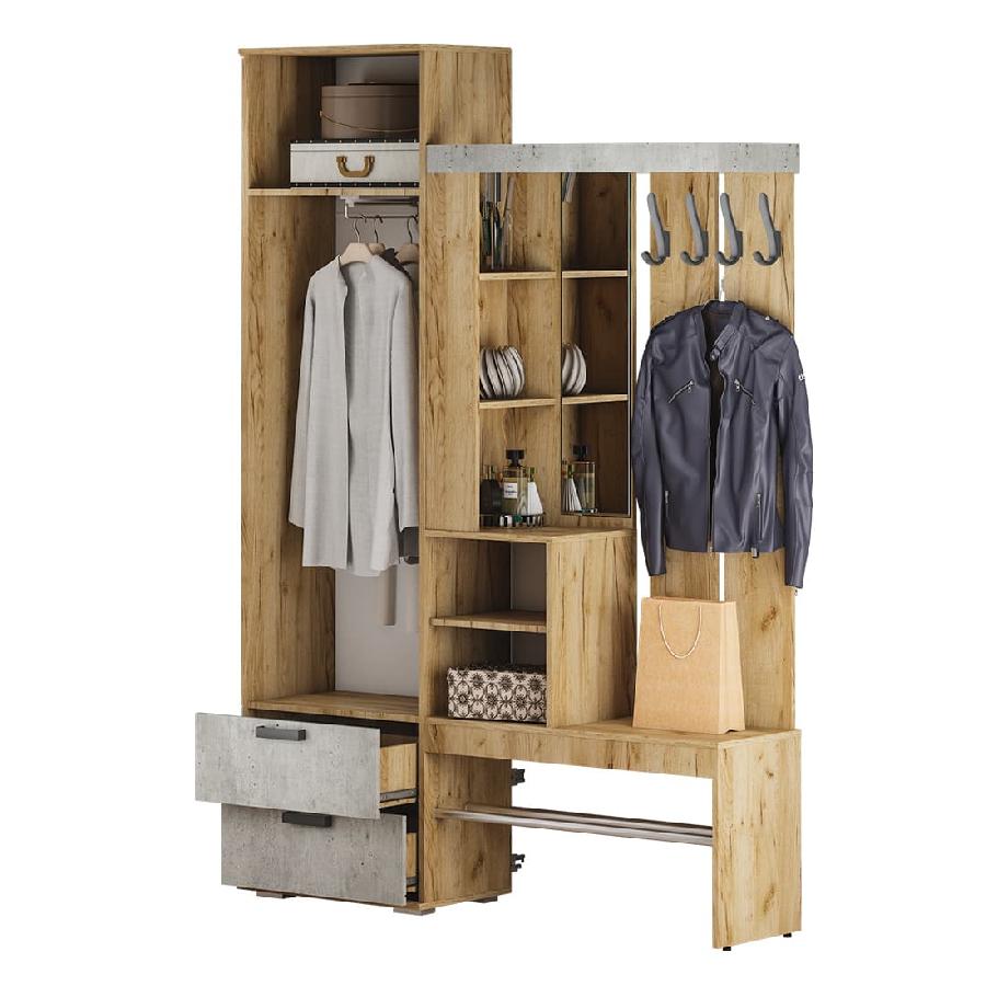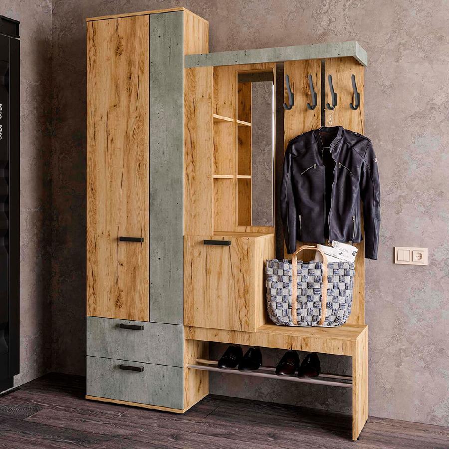 Прихожая Трамп вместительная и выполнена в необычном цветовом решении - Декор Крафт/Декор Метрополитен Грей.