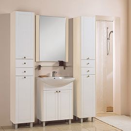Шкаф-колонна выпускается в двух вариантах: в одном случае вверху и внизу – распашные фасады, за которыми расположены регулируемые по высоте полки, во втором случае внизу вместо распашного фасада установлена бельевая корзина. Еще одна особенность колонн – возможность перевешивания распашных фасадов на противоположную сторону. Поэтому их можно использовать как в левом, так и в правом варианте.