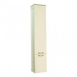 Комплект мебели можно дополнить вместительной колонной с выдвижным ящиком. За верхней и нижней створками расположены регулируемые по высоте стеклянные полки.