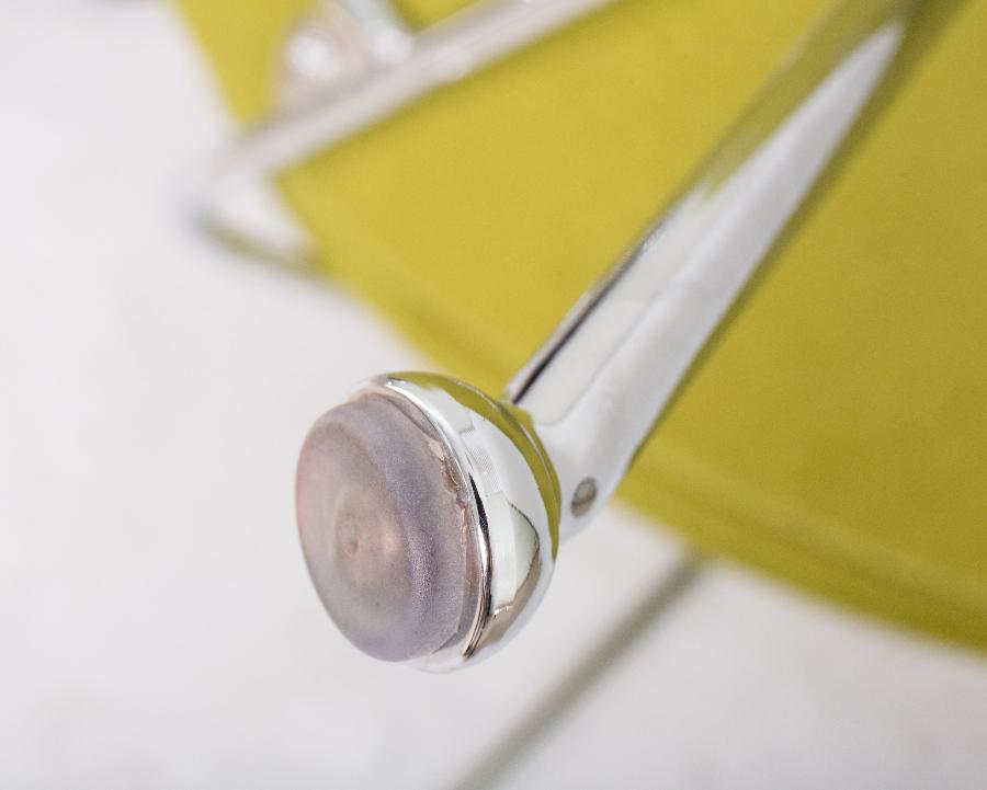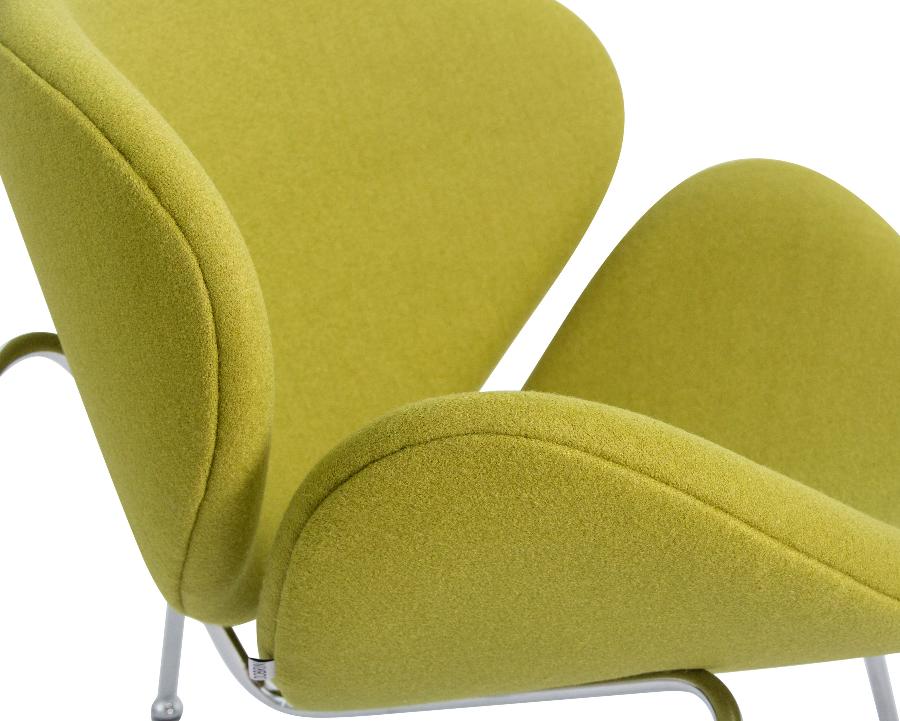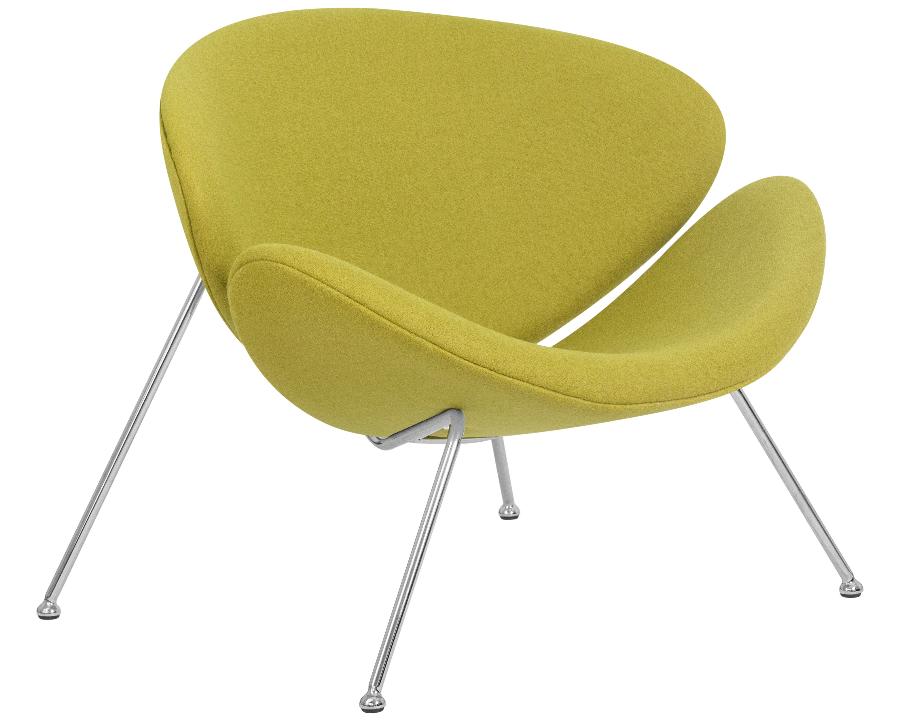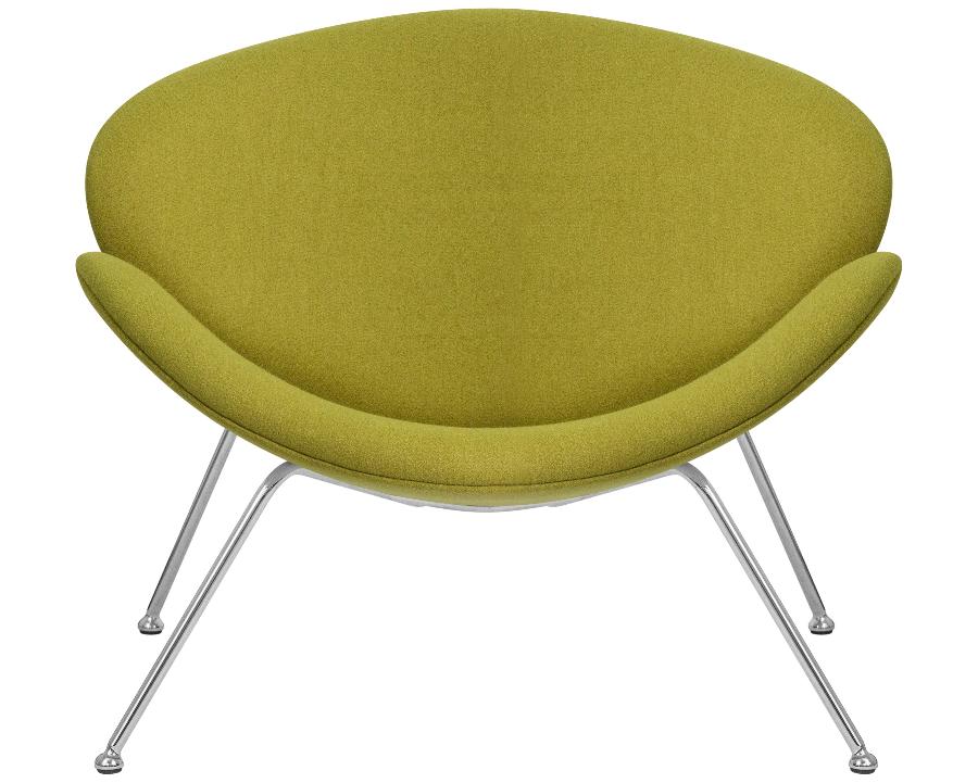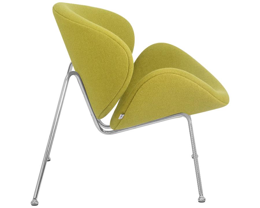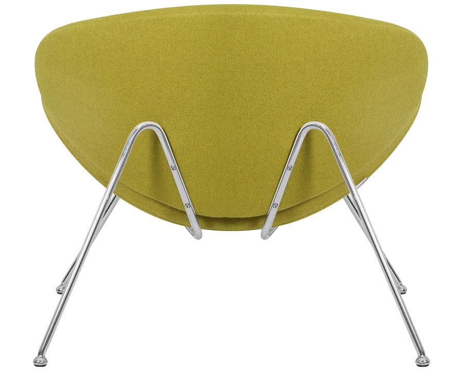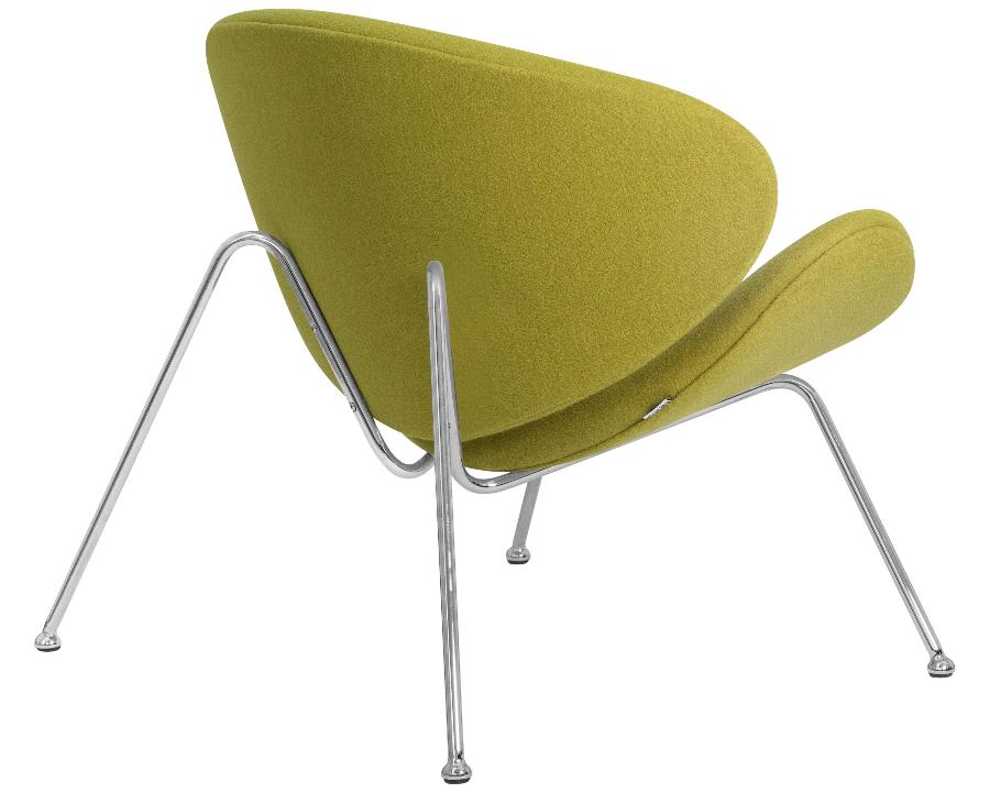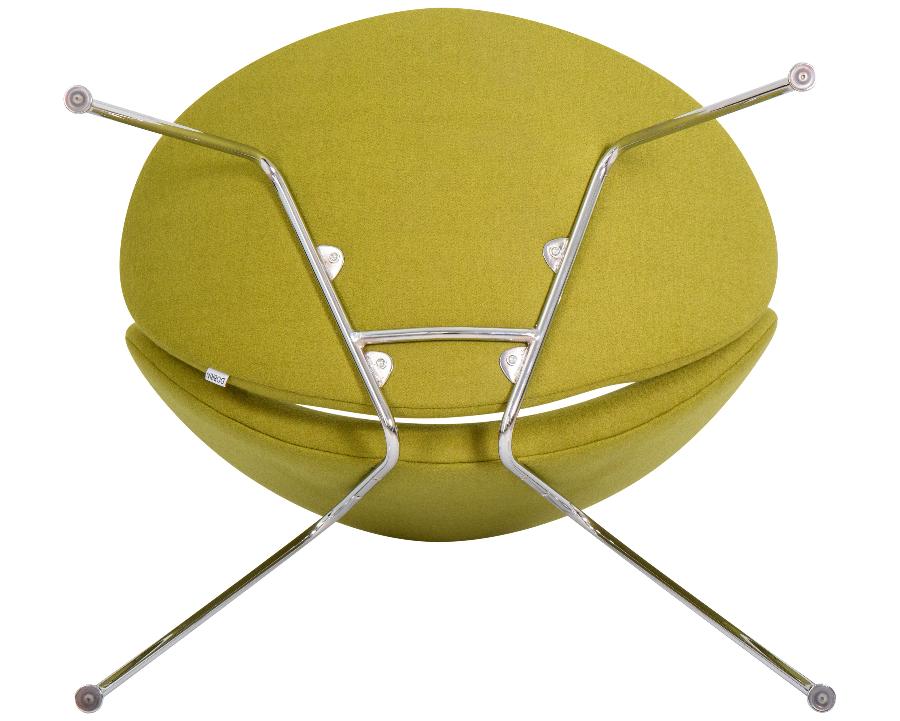Кресло состоит из двух совершенно одинаковых элементов, которые закреплены на хромированном металлическом каркасе.