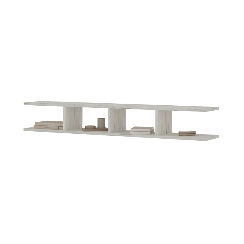Прямолинейный дизайн мебели разработан в декоре Крафт белый, напоминающий покрытое прозрачным слоем краски текстурное дерево.