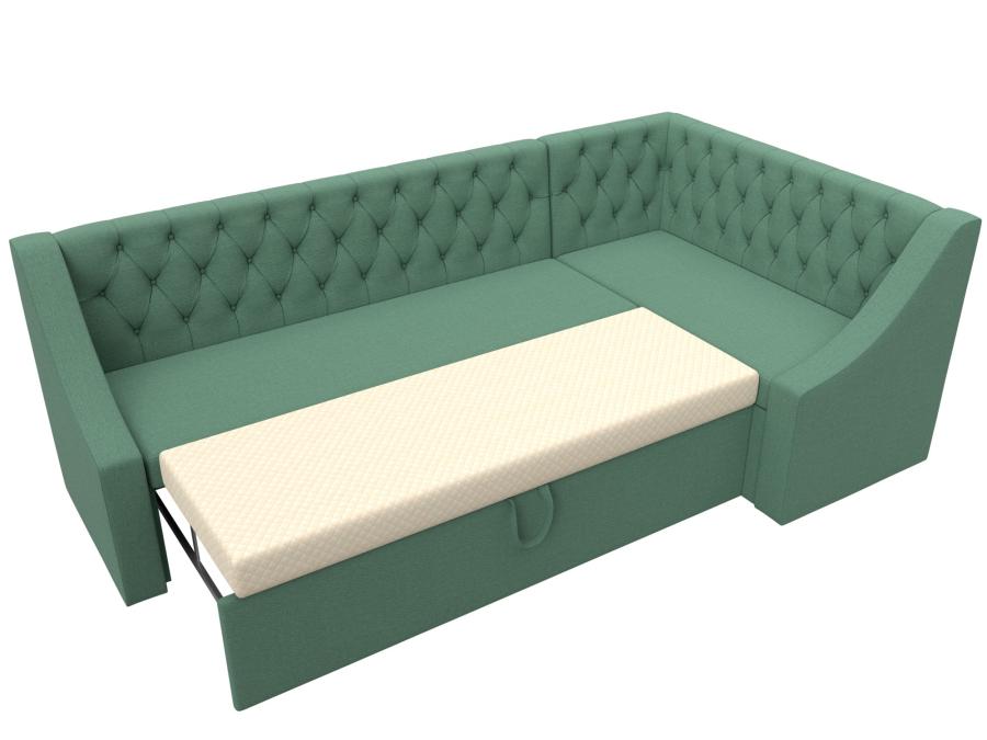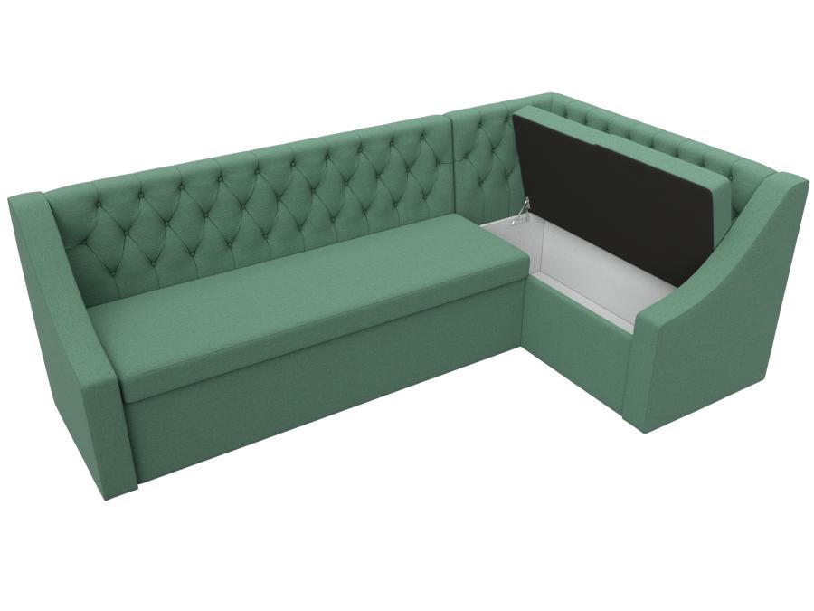 Мерлин – угловой кухонный диван хорошего качества по доступной цене. Он отлично подойдет для дополнения кухни в малогабаритной квартире. Высокая спинка, украшенная каретной стяжкой, снимет напряжение с позвоночника. Подлокотники помогут расслабить руки. Сиденье легко превращается в полноценную кровать. Дополнительную выгоду обеспечивает вместительный ящик размером 117х35х57 см под угловым сиденьем.