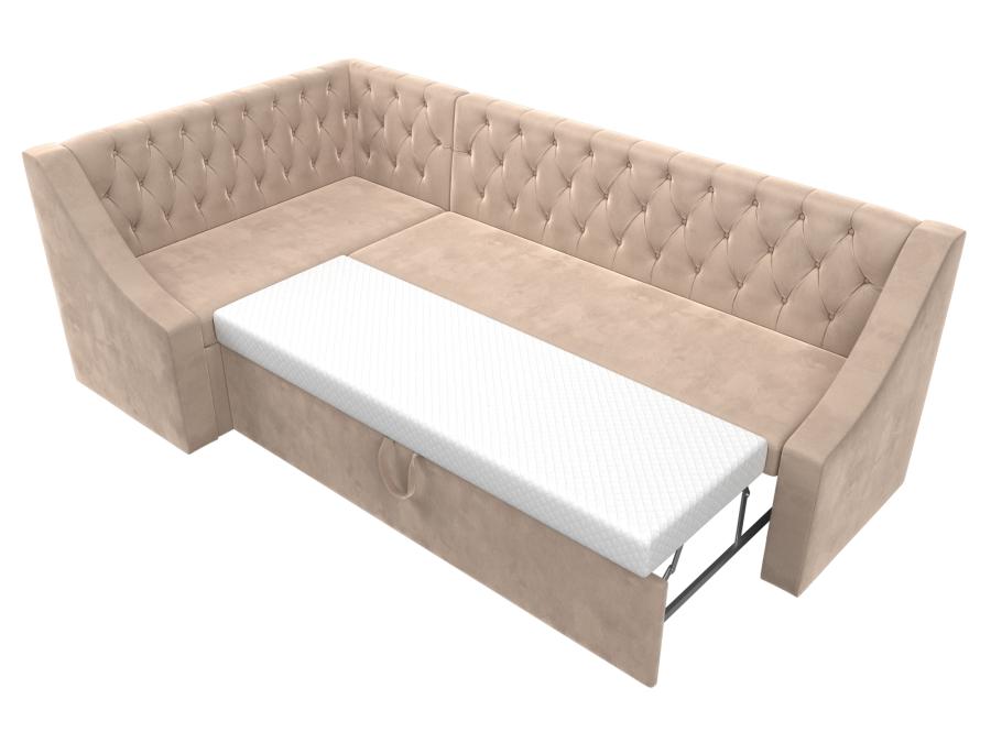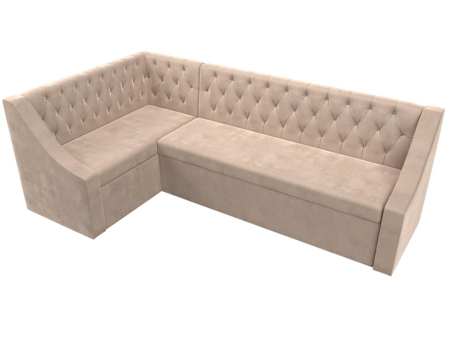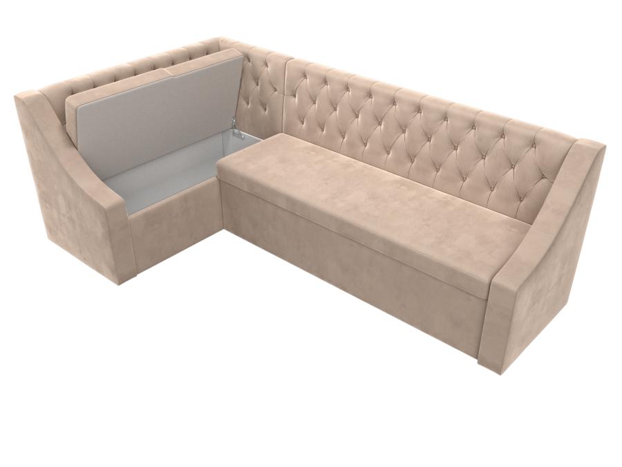 Мерлин – угловой кухонный диван хорошего качества по доступной цене. Он отлично подойдет для дополнения кухни в малогабаритной квартире. Высокая спинка, украшенная каретной стяжкой, снимет напряжение с позвоночника. Подлокотники помогут расслабить руки. Сиденье легко превращается в полноценную кровать. Дополнительную выгоду обеспечивает вместительный ящик размером 117х35х57 см под угловым сиденьем.