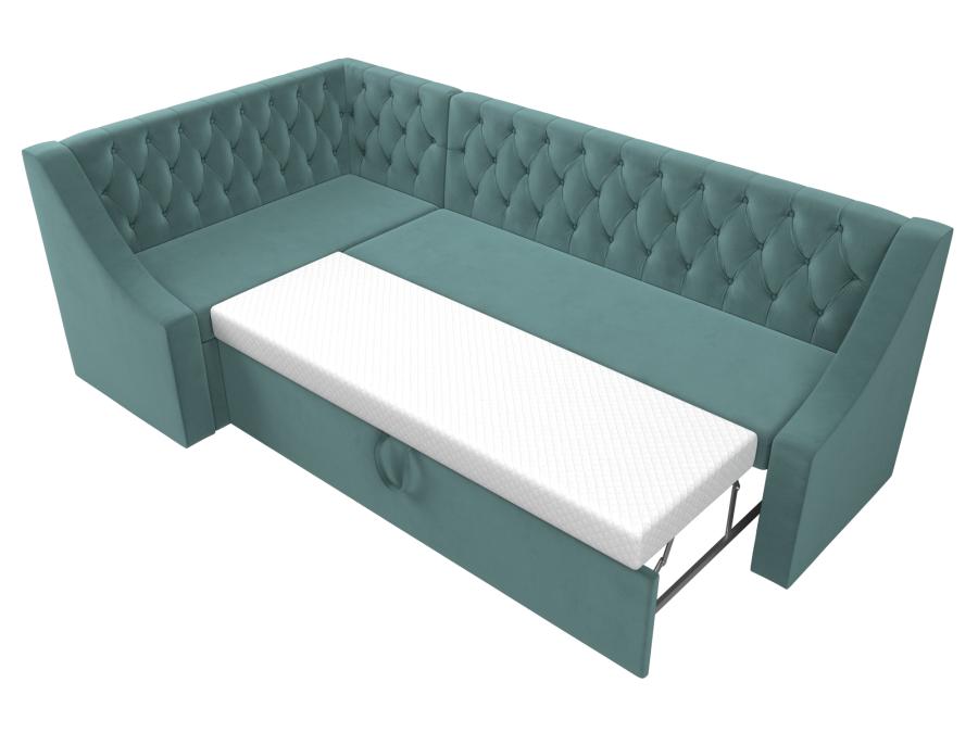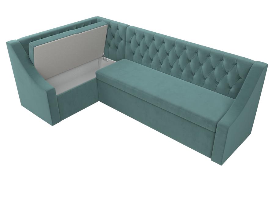 Мерлин – угловой кухонный диван хорошего качества по доступной цене. Он отлично подойдет для дополнения кухни в малогабаритной квартире. Высокая спинка, украшенная каретной стяжкой, снимет напряжение с позвоночника. Подлокотники помогут расслабить руки. Сиденье легко превращается в полноценную кровать. Дополнительную выгоду обеспечивает вместительный ящик размером 117х35х57 см под угловым сиденьем.