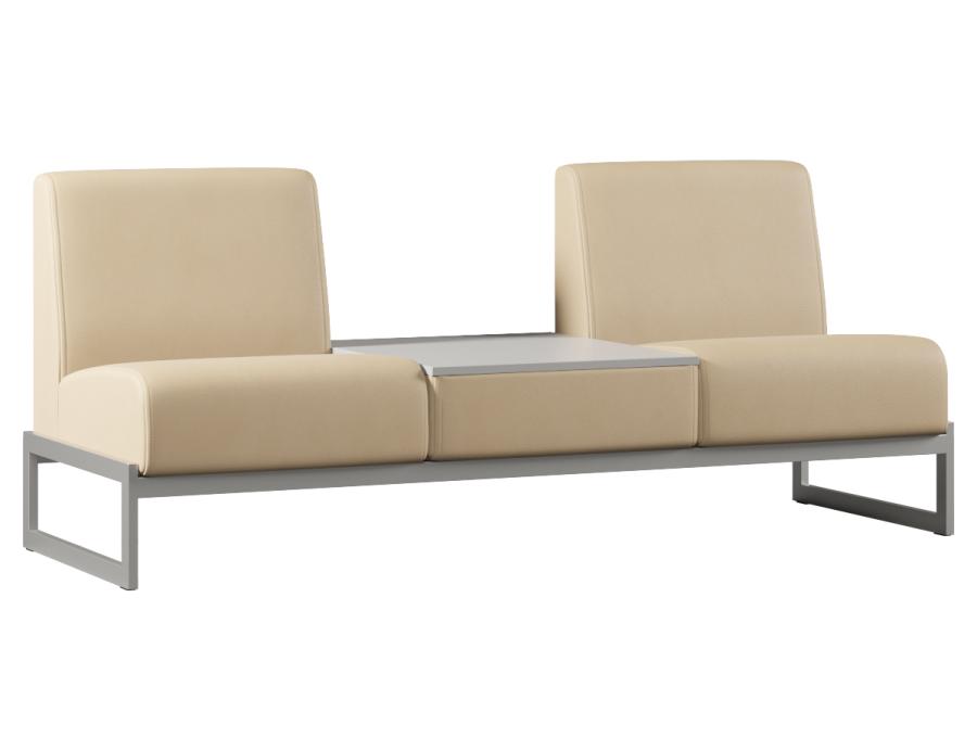 Диван Everprof Solo двухместный со столиком в центре Металл Серый Экокожа Бежевый ЛДСП Серый