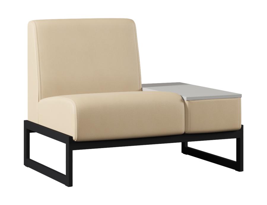Диван Everprof Solo одноместный со столиком слева Металл Черный Экокожа Бежевый ЛДСП Серый