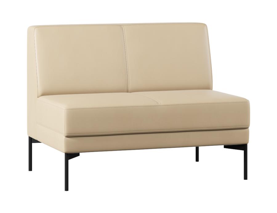 Наполнитель сиденья | ППУ марки ST 2536, аселекс 300 гр; Наполнитель спинки | ППУ марки ST 2536, аселекс 300 гр; Пружины | Сиденье - пружины "Змейка"; Основание | Опоры металлические черные. Высота 20мм; Возможность трансформации | Нераскладной; Тип дивана | Стационарный; Упаковка | Гофрокороб и упаковочная пленка; Гарантия | 12 месяцев; Каркас | ДСП, ДВП, брус хвойных пород; Материал обивки | Экокожа Pegaso; Цвет | Бежевый; Допустимая нагрузка | 120 кг на одно посадочное место; Производство | Россия;