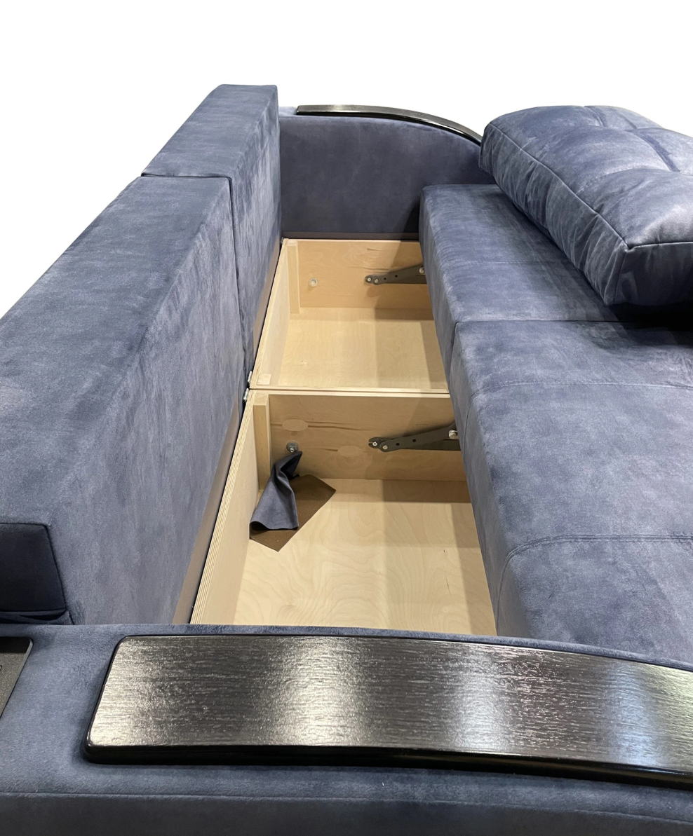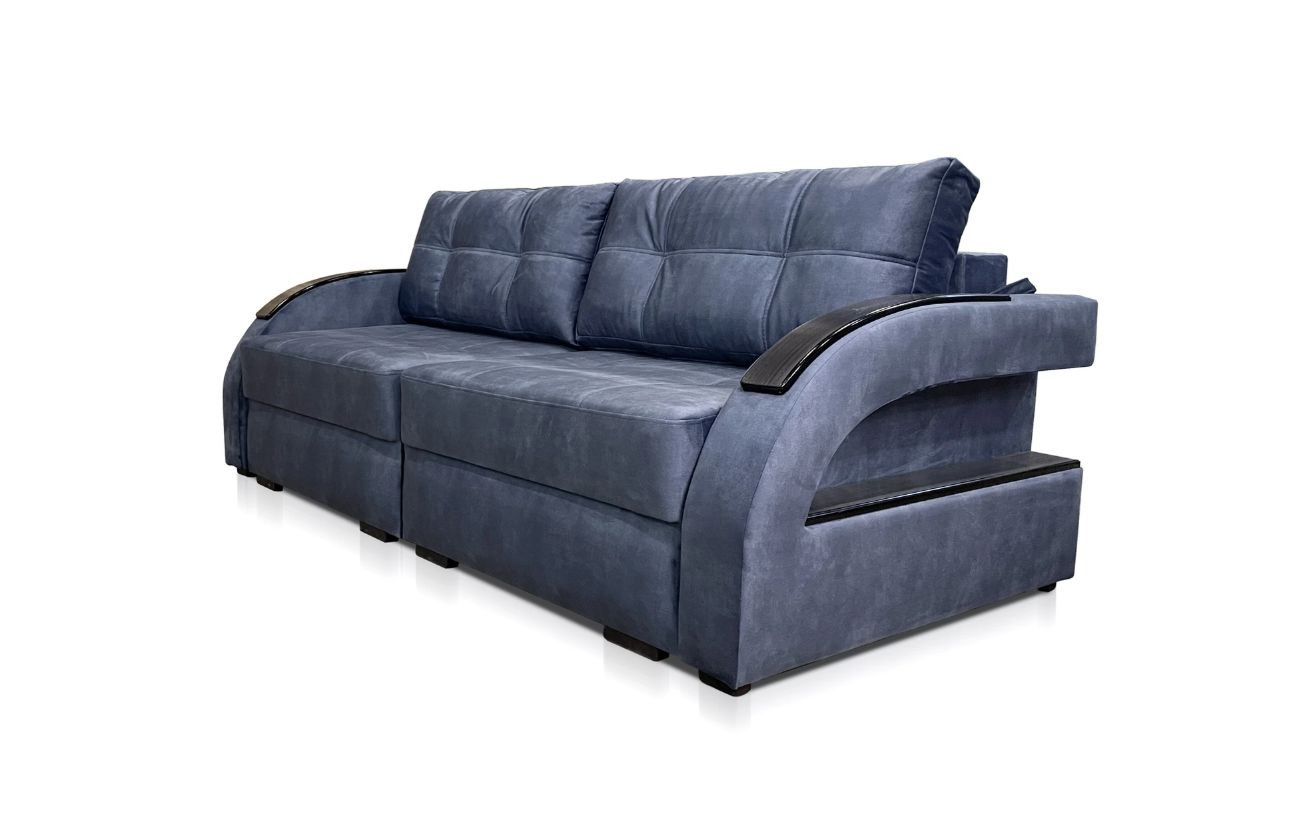 Уникальность этой модели в эксклюзивной форме подлокотника. Шпонированные накладки, расположенные на двух уровнях, выглядят эффектно.
