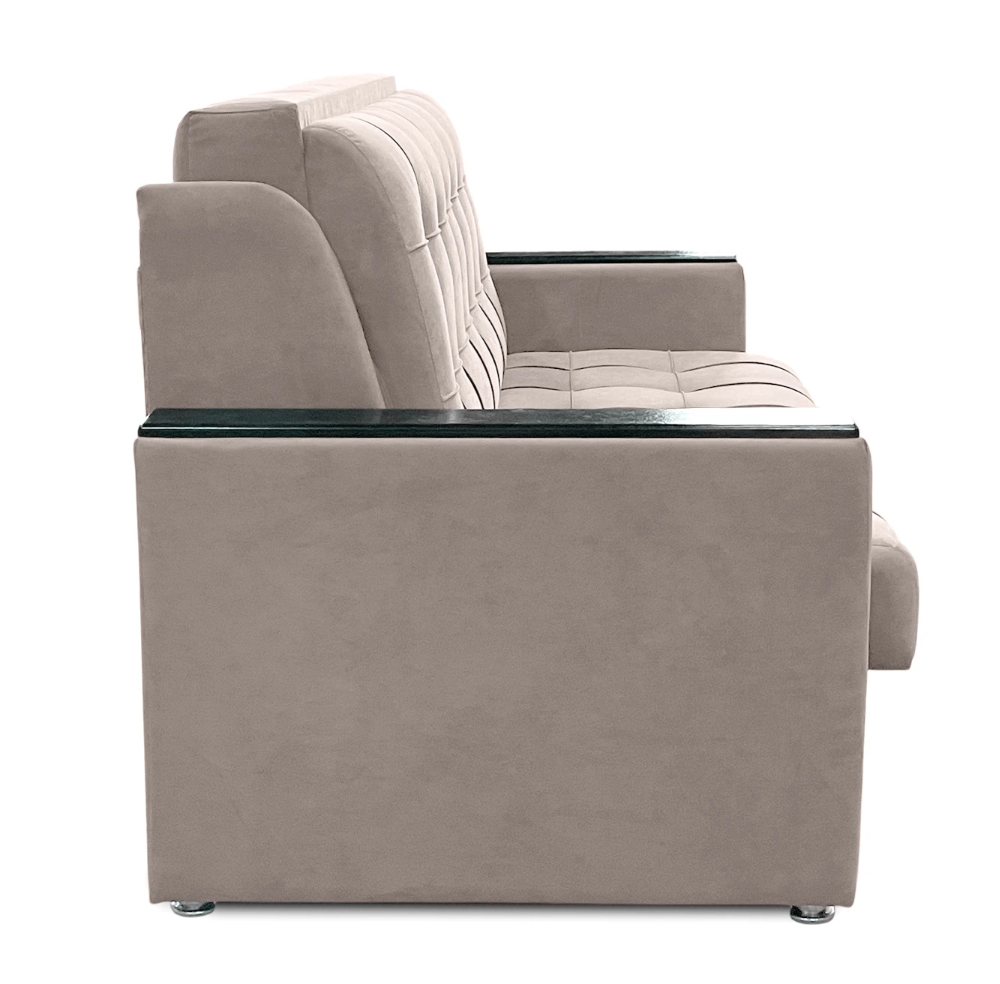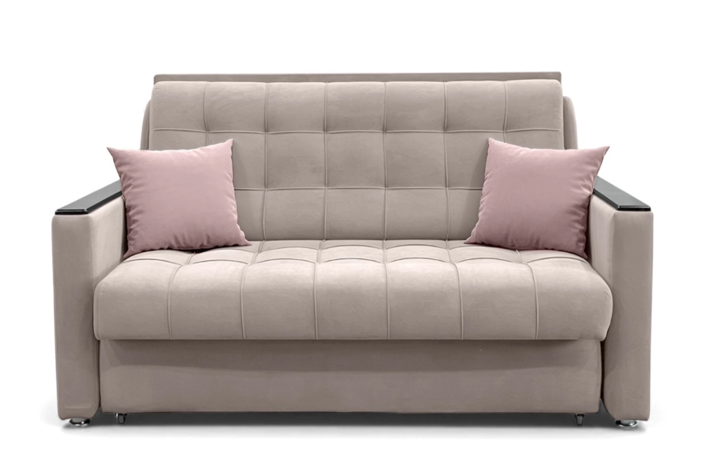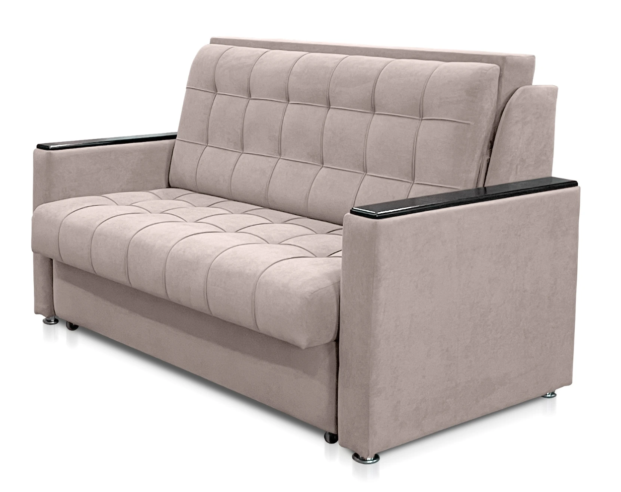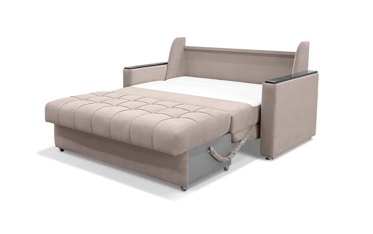 -Простая и надежная система трансформации "Дуги-кронштейны" . Разложить диван очень просто. Для этого нужно спинку дивана потянуть вниз, сиденье на прорезиненных колесиках выкатится вперед. Затем опустить подголовник. Диван-кровать готов к использованию;