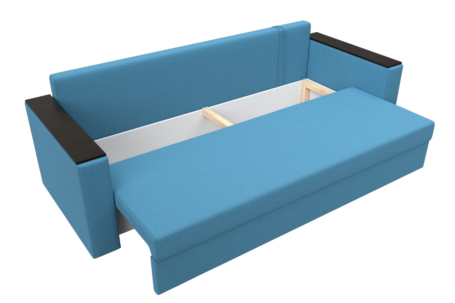 Механизм раскладки: еврокнижка. Система трансформации прямого дивана состоит из блоков, установленных на направляющие и кронштейны. Разложить кровать можно выдвинув вперед сиденья и опустив спинки.