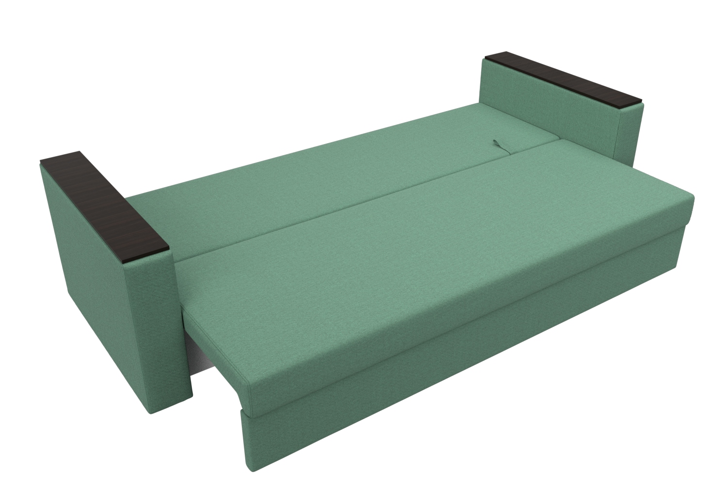 Механизм раскладки: еврокнижка. Система трансформации прямого дивана состоит из блоков, установленных на направляющие и кронштейны. Разложить кровать можно выдвинув вперед сиденья и опустив спинки.