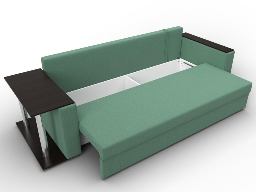 Диван прямой Атланта Лайт со столом слева Рогожка зеленый
