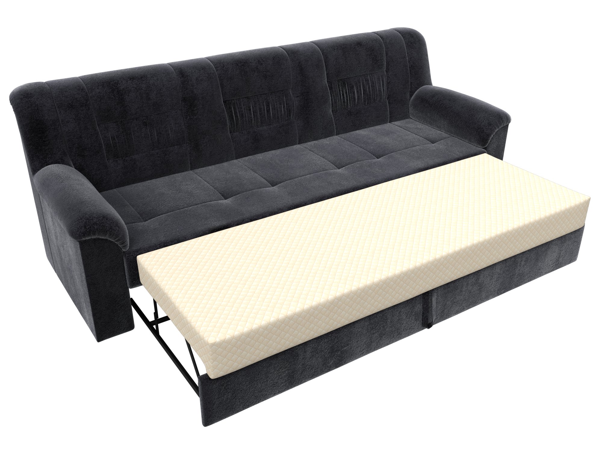 Механизм раскладки: дельфин. Надежная и долговечная система, состоящая из металлических кронштейнов и направляющих. Разложить прямой диван можно выдвинув вперед нижнюю часть сиденья. Из открывшейся ниши автоматически поднимется спальный блок.