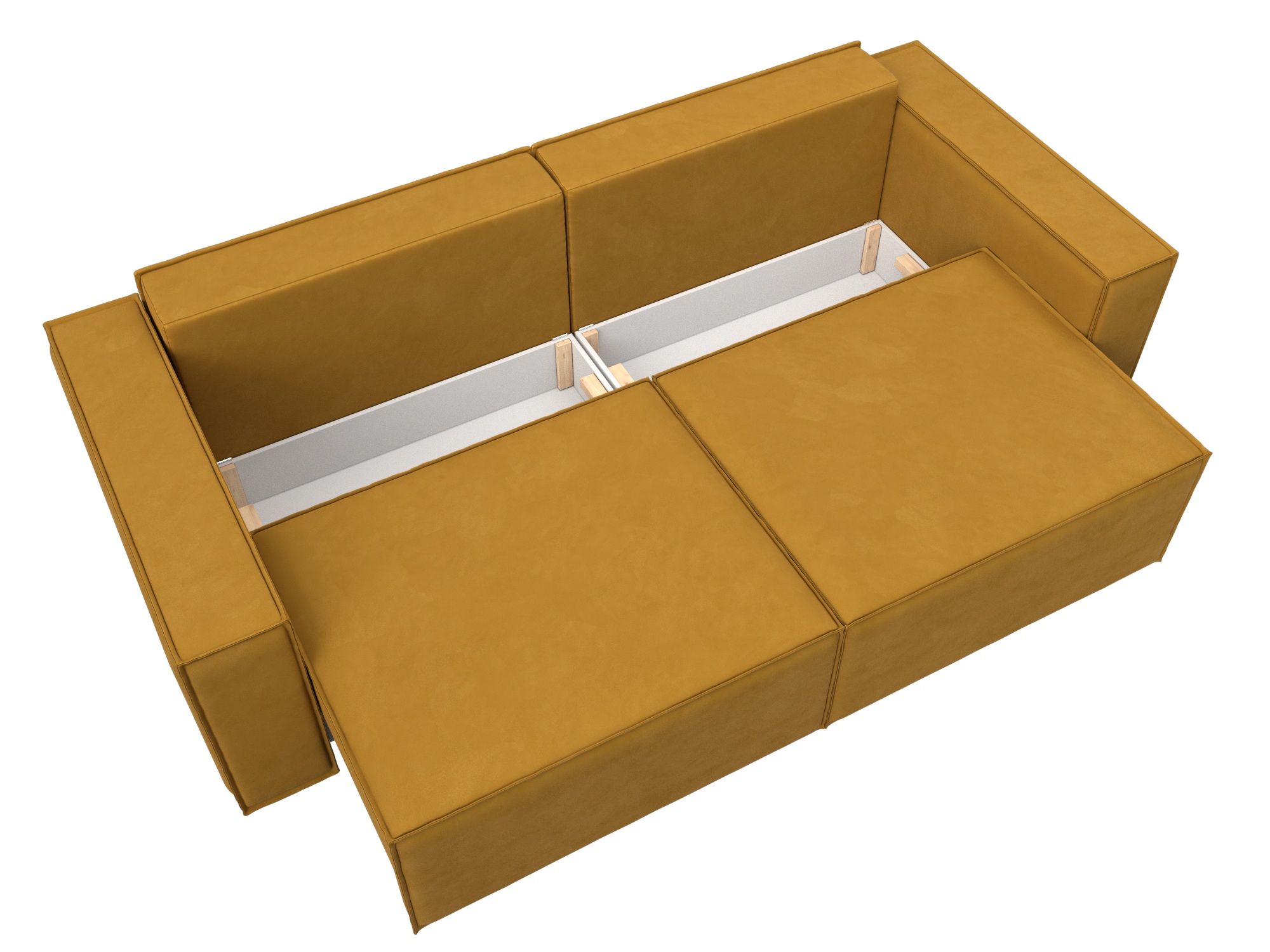Механизм раскладки: еврокнижка. Конструктивно сложная, при этом простая в использовании, система трансформации. Сиденье дивана легко выдвигается вперед по направляющим. Спинка, закрепленная на кронштейнах, вручную укладывается в открывшуюся нишу.