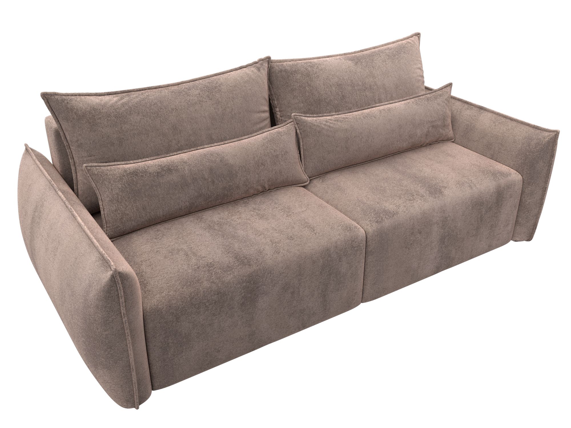 Обивка: велюр, рогожка. Прямой диван производится в различных цветовых оттенках, от которых зависит выбор ткани. Материи прочные, не выцветают на протяжении всего срока эксплуатации.