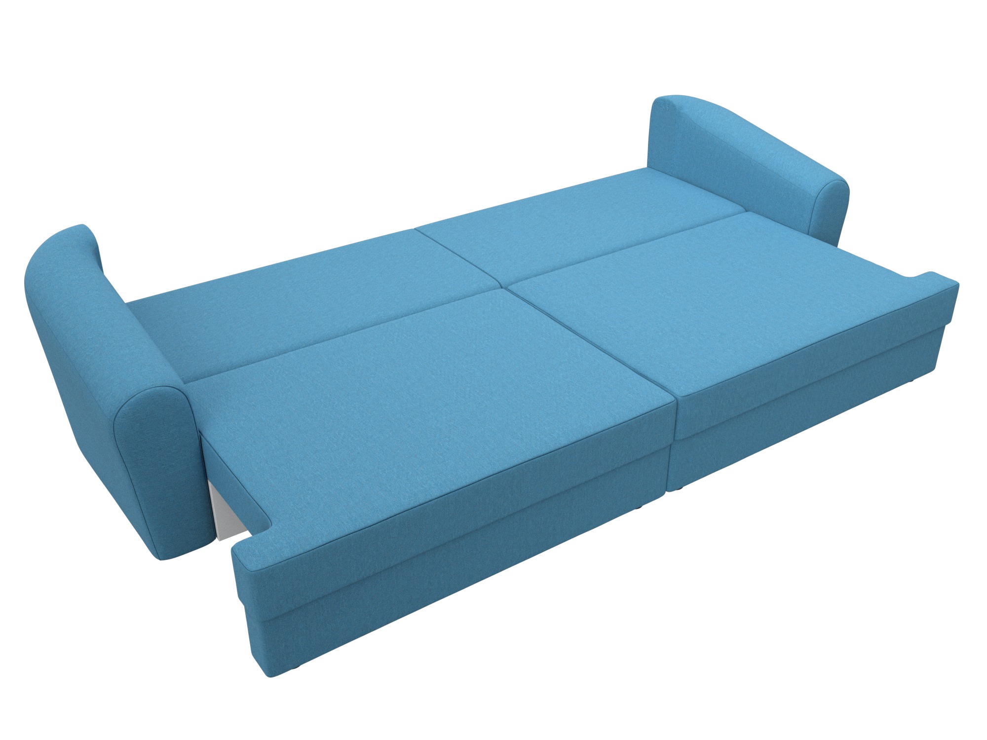 Механизм раскладки: еврокнижка. Система состоит из прочных кронштейнов и стальных роликовых направляющих. Трансформировать прямой диван в кровать можно выдвину вперед сиденья, опустив спинки в ниши.