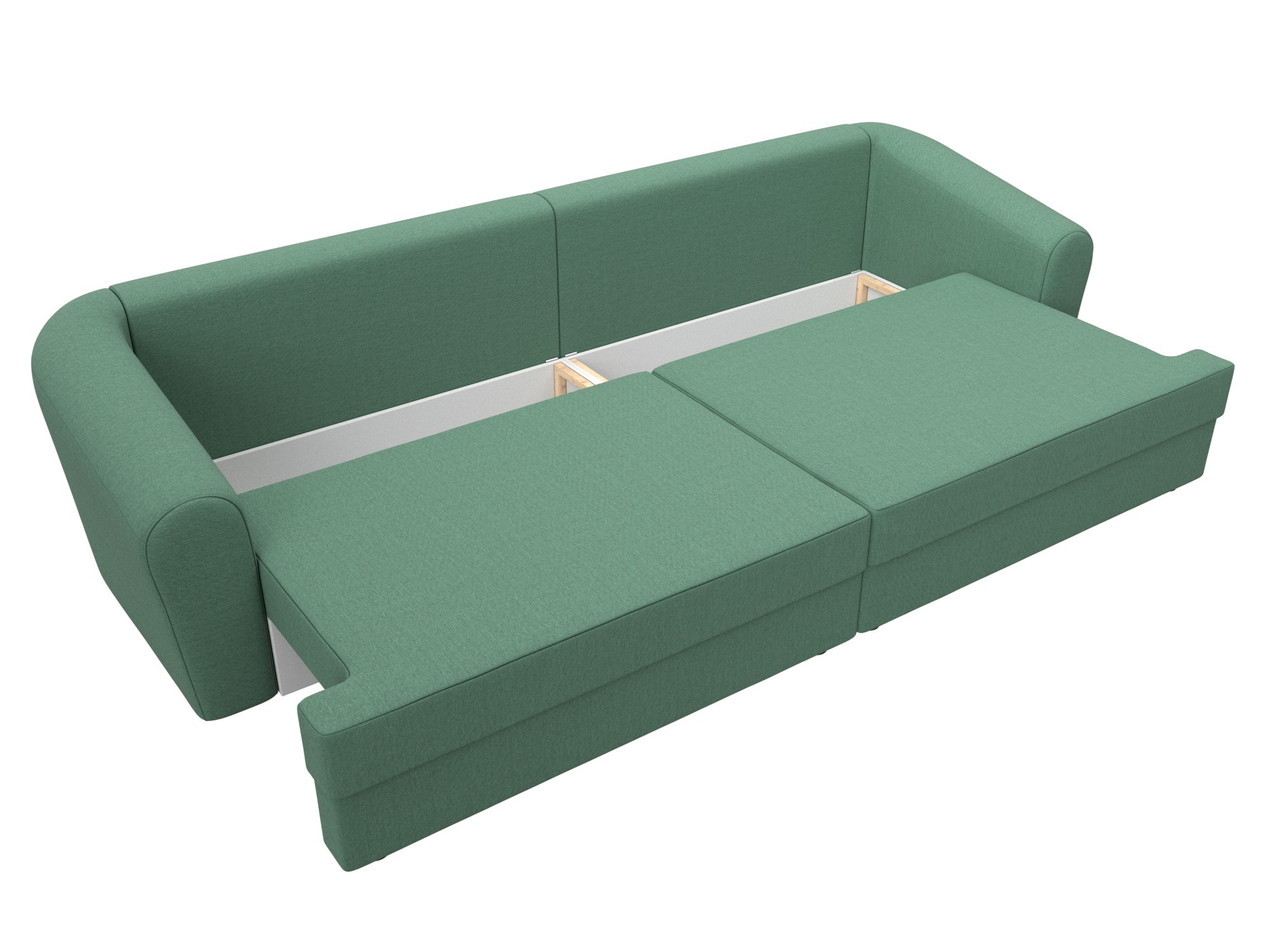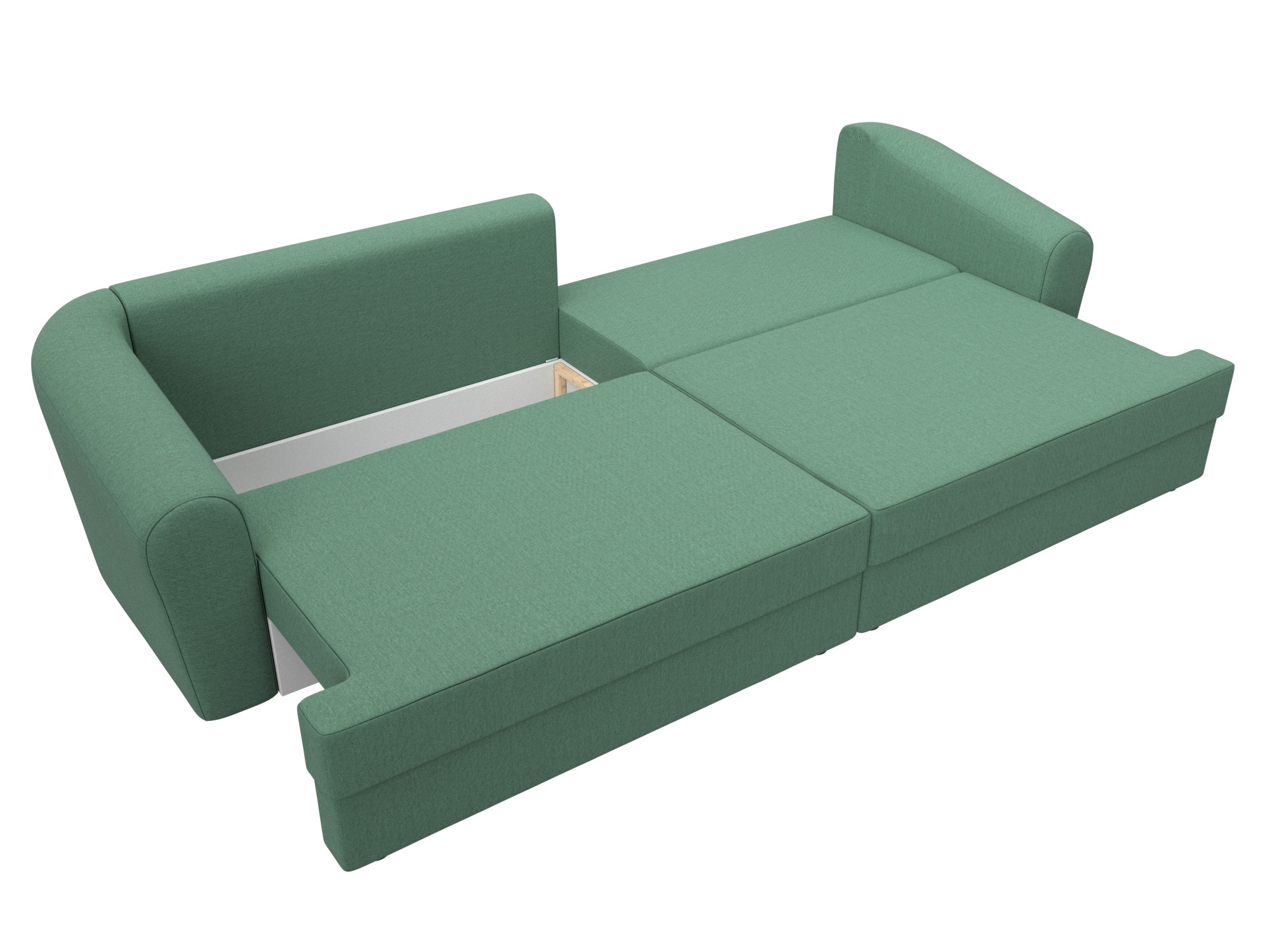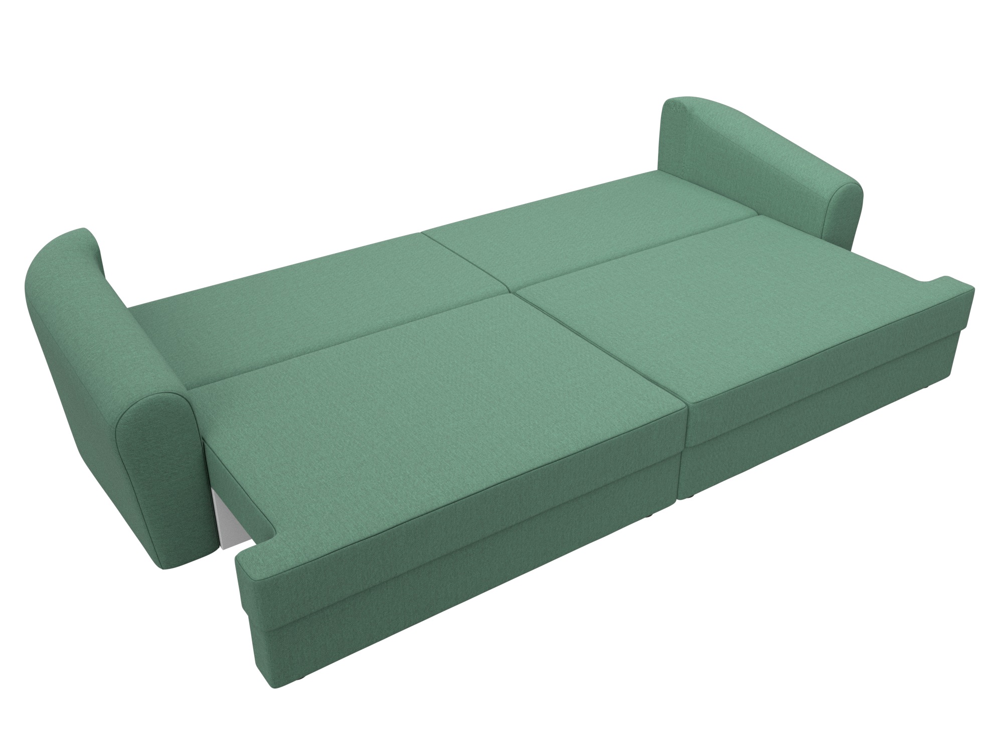 Механизм раскладки: еврокнижка. Система состоит из прочных кронштейнов и стальных роликовых направляющих. Трансформировать прямой диван в кровать можно выдвину вперед сиденья, опустив спинки в ниши.