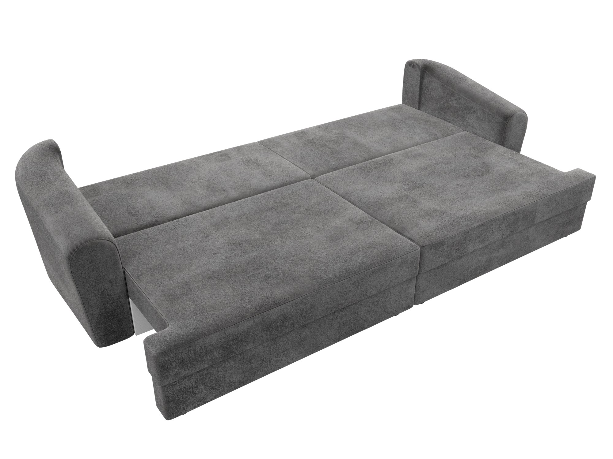 Механизм раскладки: еврокнижка. Система состоит из прочных кронштейнов и стальных роликовых направляющих. Трансформировать прямой диван в кровать можно выдвину вперед сиденья, опустив спинки в ниши.