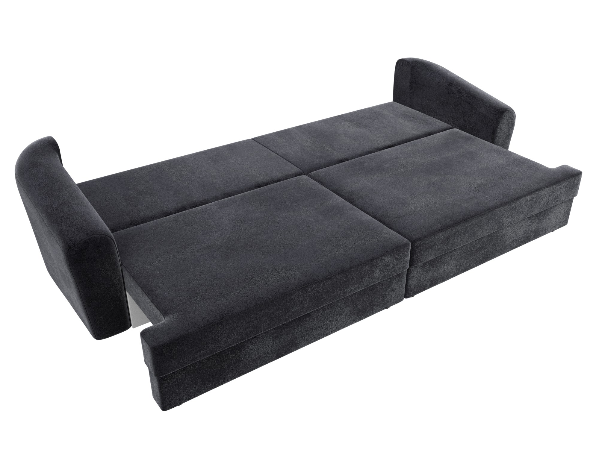 Механизм раскладки: еврокнижка. Система состоит из прочных кронштейнов и стальных роликовых направляющих. Трансформировать прямой диван в кровать можно выдвину вперед сиденья, опустив спинки в ниши.