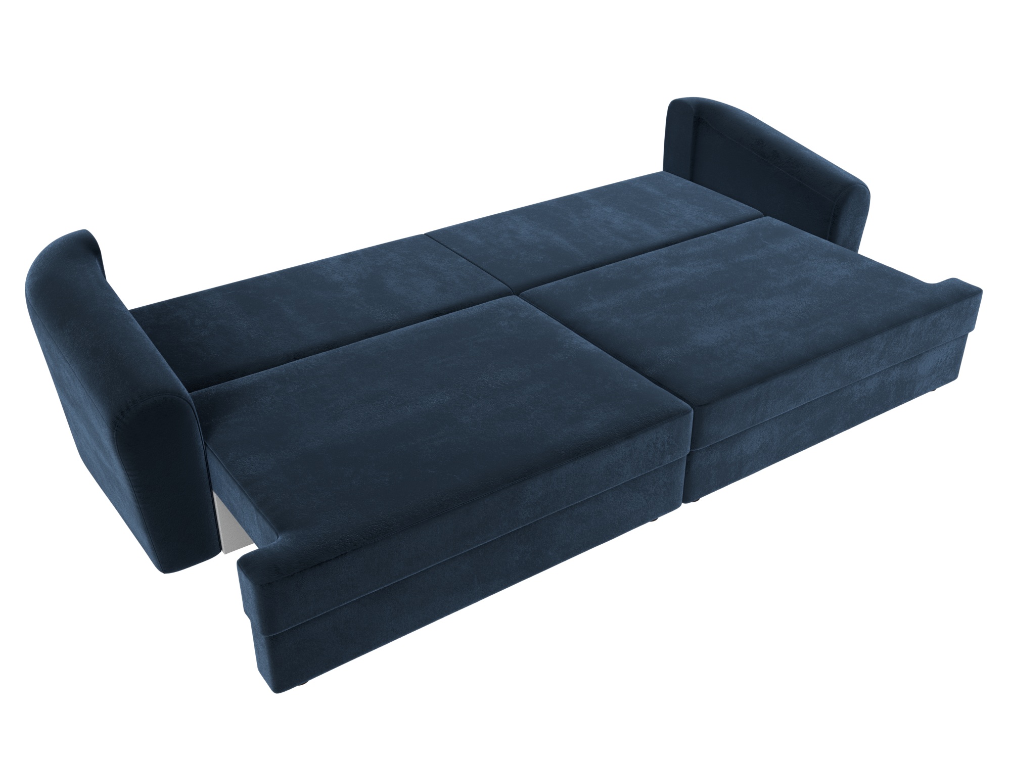 Механизм раскладки: еврокнижка. Система состоит из прочных кронштейнов и стальных роликовых направляющих. Трансформировать прямой диван в кровать можно выдвину вперед сиденья, опустив спинки в ниши.