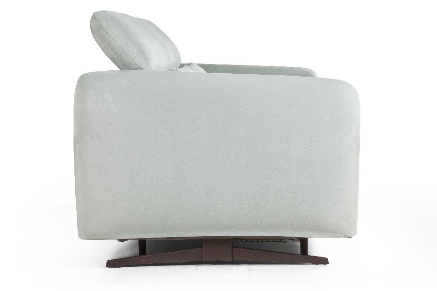 Любой наполнитель обеспечит комфорт во время отдыха и сна, поддержит удобное положение тела, а мягкая обивка из замши подарит приятные тактильные ощущения. Минималистичный диван пастельного природного оттенка легко представить в любом современном интерьере. Модель украшают лишь узкий кант и сложное плетение мокасинового шва.