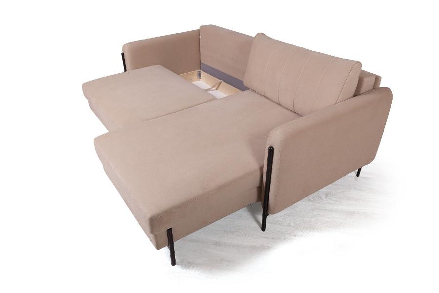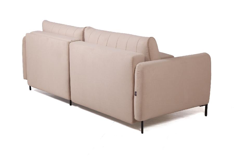 Металлические опоры гладко переходят в декоративный элемент, что придает акцент дивану и неповторимый эффект легкости. Высота опор - 14,5 см. Это позволяют применить современные технологии уборки, например, робот-пылесос.