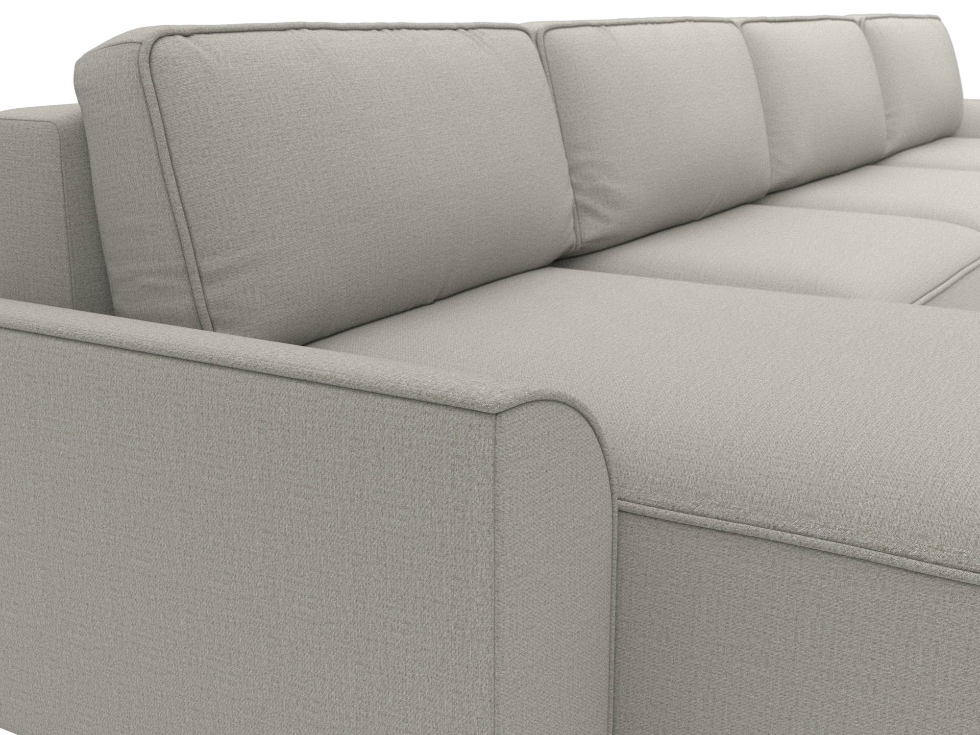 П-образный диван Лига-048 НПБ лонг – современный диван с лаконичным дизайном и невероятной функциональностью. В считанные секунды, он трансформируется в широкую кровать. Изделие оснащено мягкими подлокотниками и съемными подушками, дополнено вместительными ящиками для белья. Комфортабельность отдыха гарантирована.