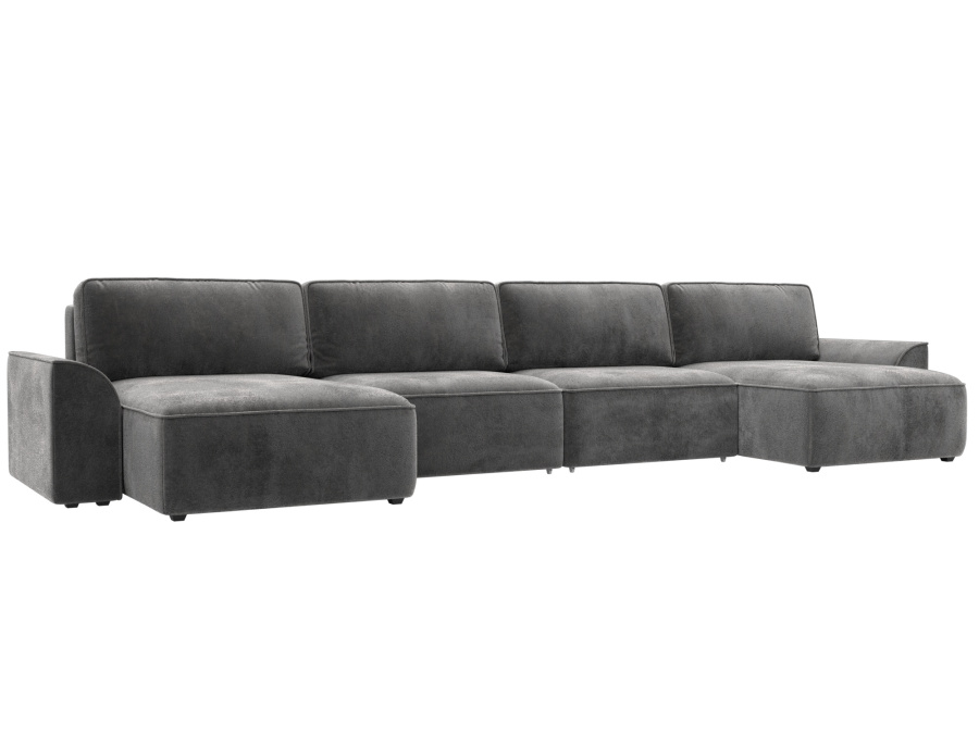 Диван п-образный Лига-048 НПБ лонг Велюр серый